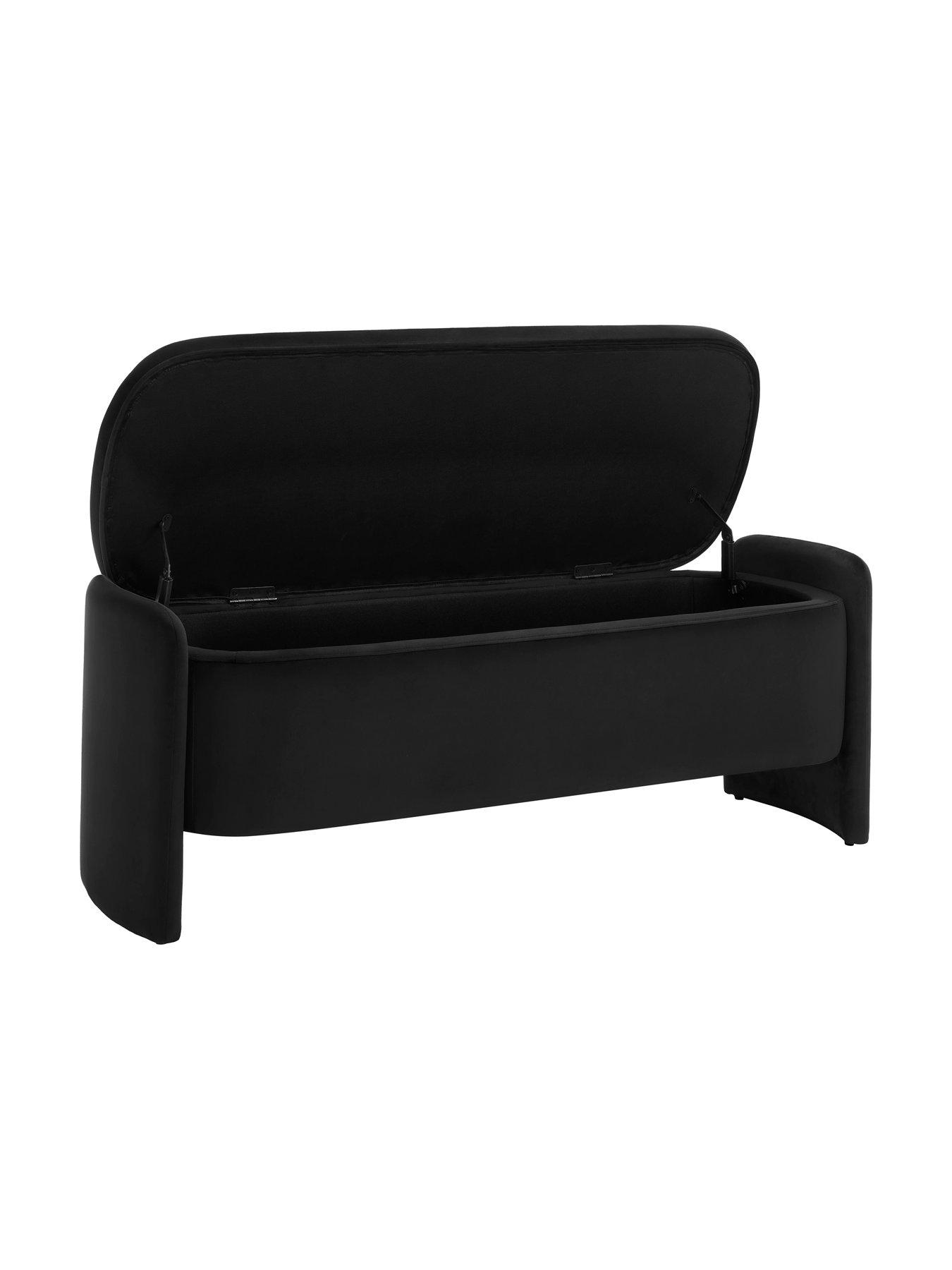 Dusk Didsbury Curved Ottoman Storage Bench - InkElevate your space with the effortless elegance of the Didsbury storage bench.This ottoman storage bench is the perfect blend of style and functionality, offering both a stylish seating option and ample storage space. The concealed storage compartment provides space for blankets, pillows, books, clothing, and anything else you want to keep tidy! This versatile piece can be used as extra seating in your living room, a statement piece in your bedroom, and even a resting place in your hallway. Its minimalist contemporary design complements a wide range of interior styles. Keep in mind: Our styled room images are for inspiration only, and colours may vary depending on lighting and surroundings. For the truest colour reference, please see the product images on a plain background.