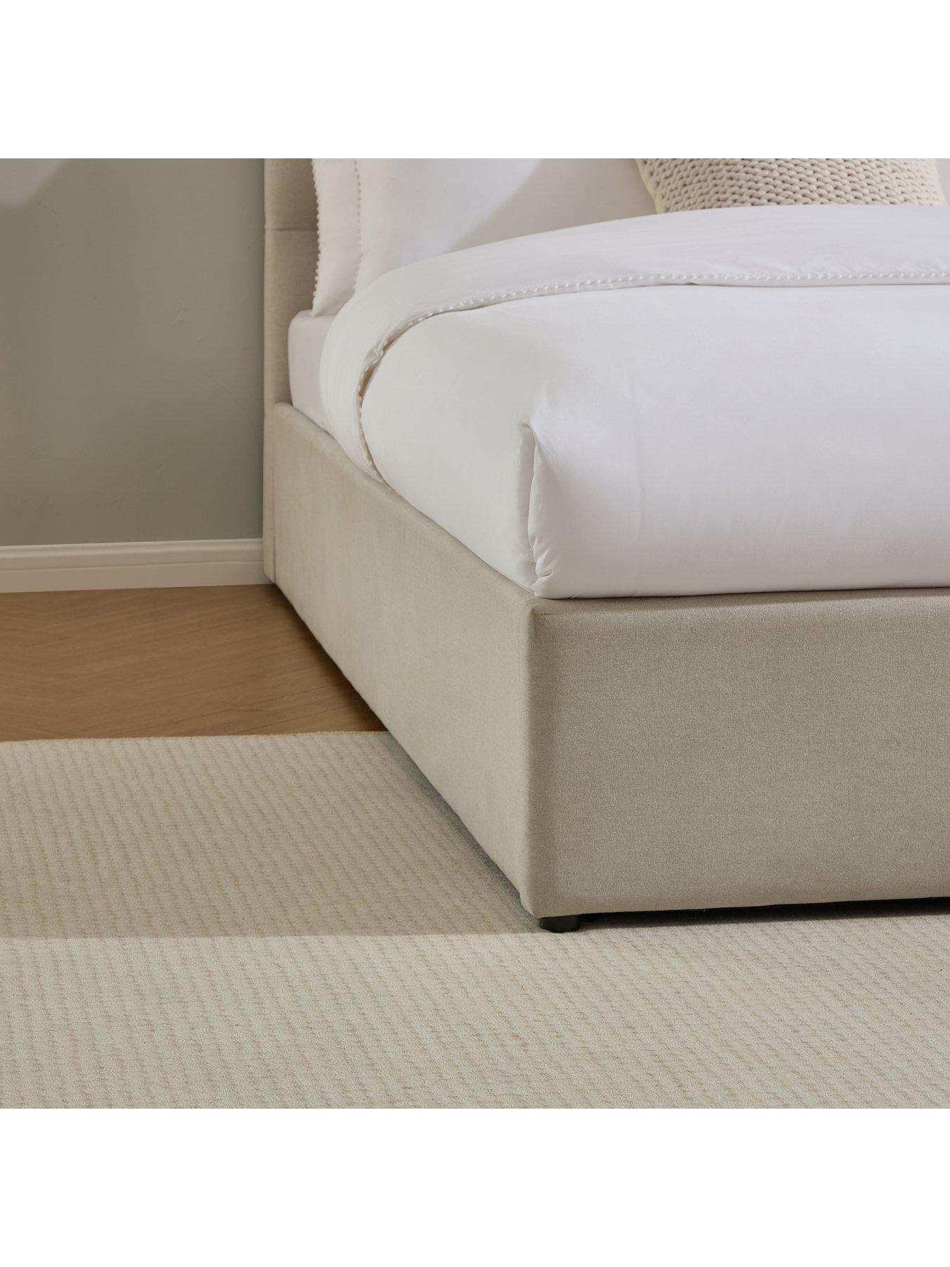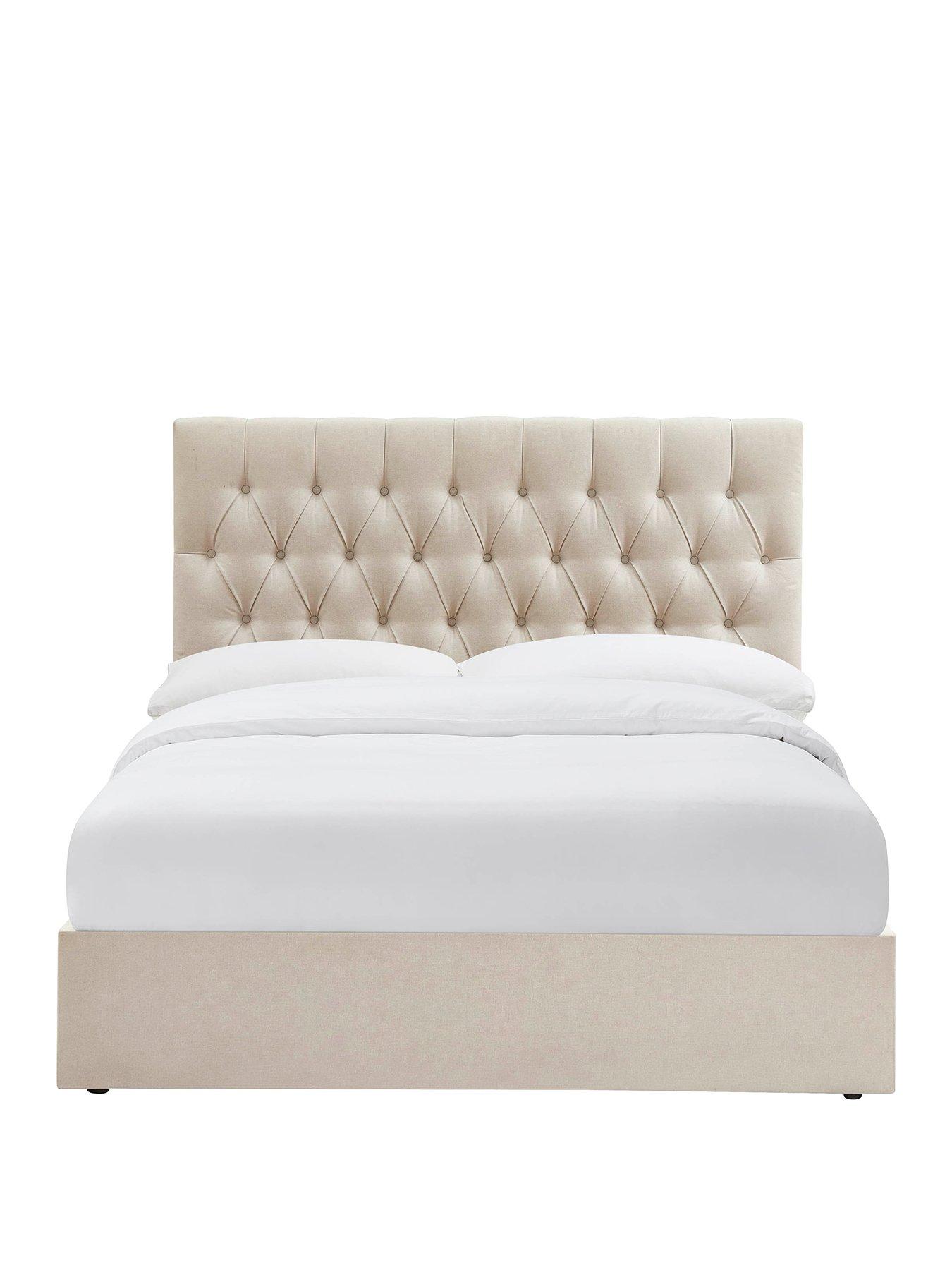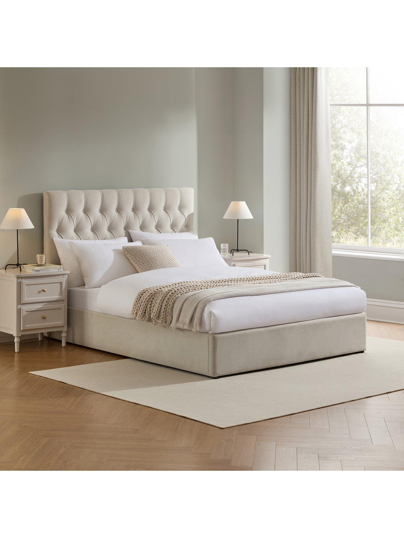 Dusk Middleton Natural Ottoman Storage Bed - Super KingWelcome classic style to the bedroom with our elegant upholstered Middleton Linen Look ottoman storage bed in natural. Featuring a stunning hand buttoned design and luxurious, soft-touch linen look fabric, this cushioned headboard is one of our tallest for an eye-catching finish, feeling just as premium as it looks.With generous underbed storage, this ottoman storage bed is a beautifully simple space-saving solution. Lift from the foot of the bed to store extra bedding and towels the perfect way to keep your sleep space clutter-free. Choose from double, king or super king size. Easy assembly required. Keep in mind: Our styled room images are for inspiration only, and colours may vary depending on lighting and surroundings. For the truest colour reference, please see the product images on a plain background.