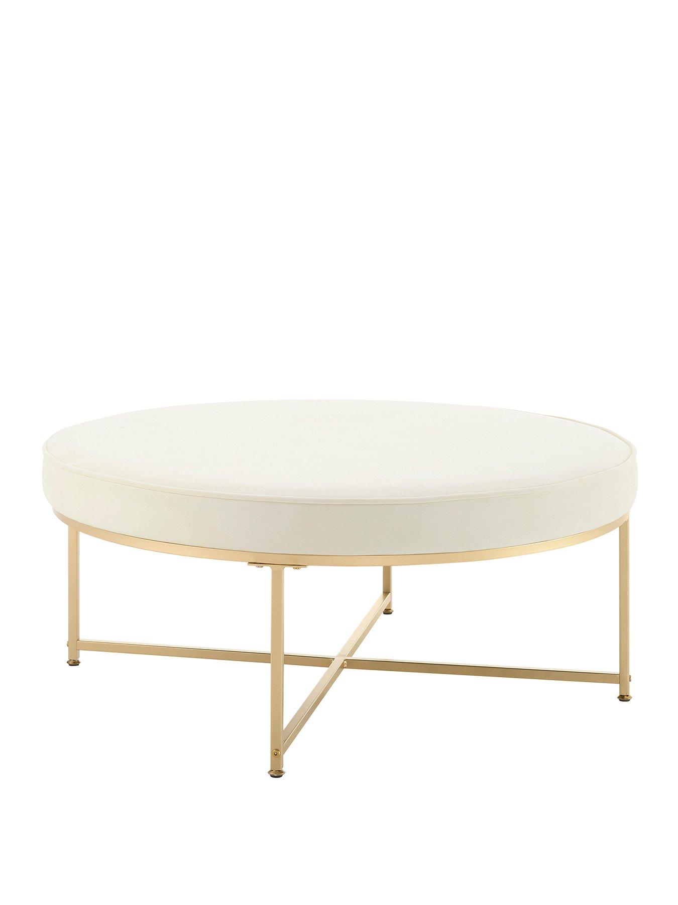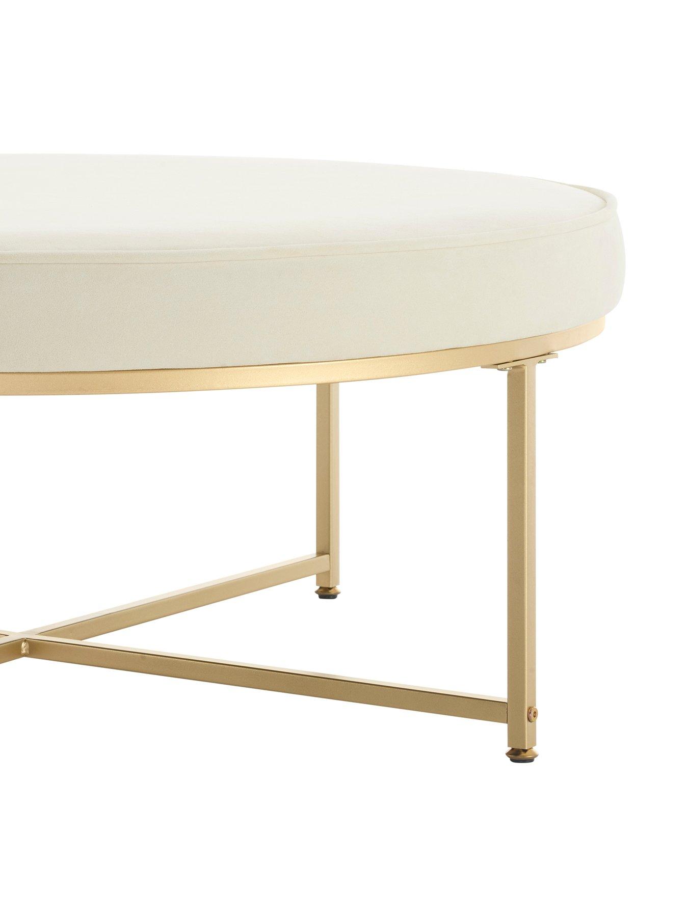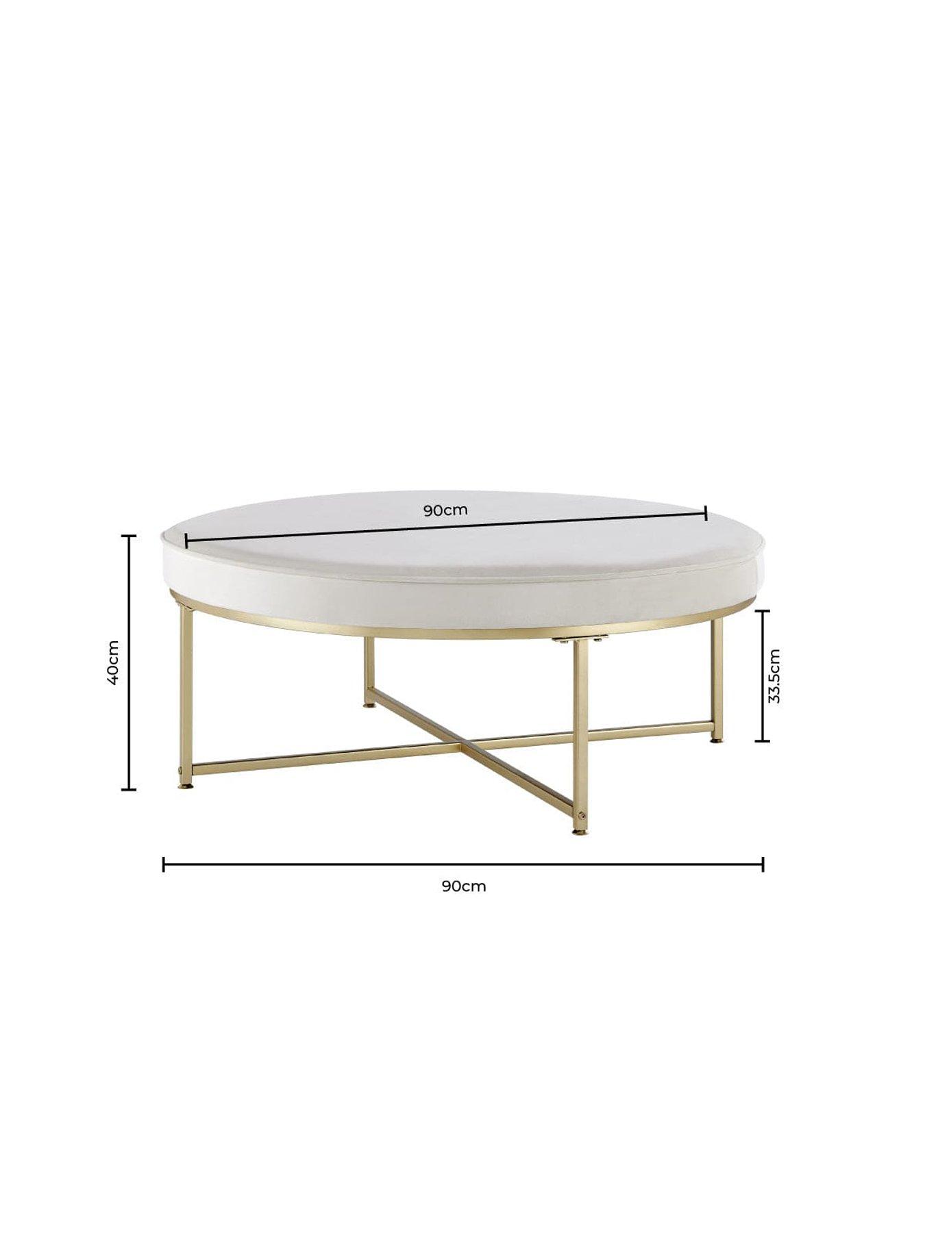 Dusk Northwich Round Pouffe - EcruCombining the usefulness of both a coffee table and a pouffe, upgrade your space with the Northwich.This round pouffe has a soft velvet fabric top and sleek gold finish metal legs, making it an opulent addition to your room. In your living room, the pouffe has lots of uses - it can act as somewhere to rest your feet or your morning cup of coffee. Choose between neutral ecru, or mono stripefor your new flawless furniture. The velvet pouffe will be delivered to the room of your choice with only the legs left to attach. Now, all you need to do is sit back and enjoy. Keep in mind: Our styled room images are for inspiration only, and colours may vary depending on lighting and surroundings. For the truest colour reference, please see the product images on a plain background.
