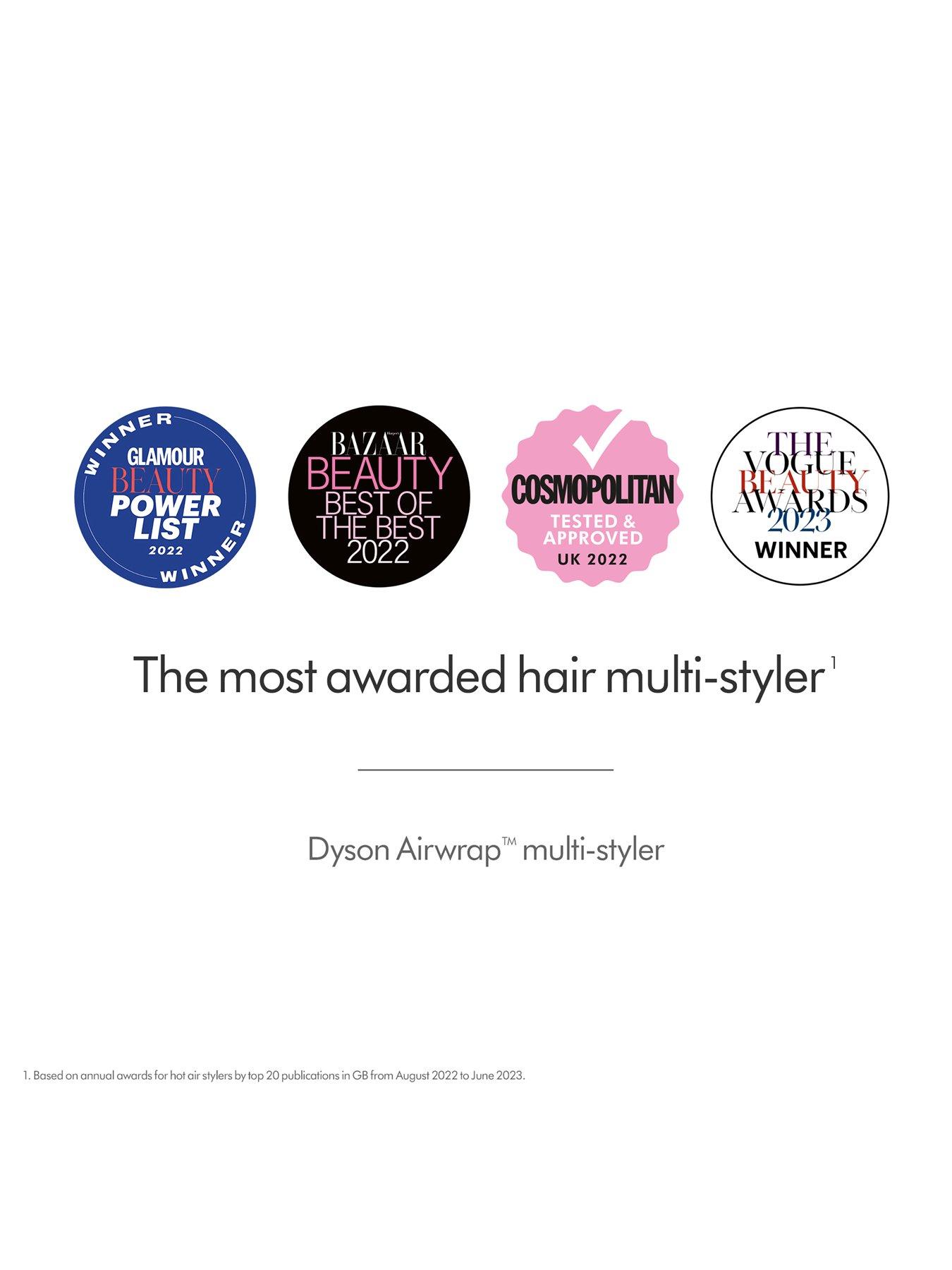 The most awarded hair multi-styler1The only multi-styler to dry, curl, shape and hide flyaways with the Coanda effect – with no heat damage. Invented by Dyson.Re-engineered attachments harness Enhanced Coanda airflow to create your styles with air, not extreme heat. Dries and styles simultaneously – with no extreme heat Some styling tools use extreme temperatures to break bonds in the hair and reset them in a new shape. This can cause permanent damage to the hair. The Dyson Airwrap™ multi-styler styles hair from wet to dry using Coanda airflow, not extreme heat. Multiple heat and speed settings Three precise airflow speeds and three precise heat settings. Plus a Cold shot to set your style. Intelligent heat control Measures airflow temperature over 40 times a second. Preventing extreme heat damage. Engineered for multiple hair types, lengths and styles Re-engineered attachments for faster and easier styling³ with increased control4 2-in-1 Coanda Smoothing Dryer Multi-functional attachment to dry, smooth and hide flyaways. Flyaway mode is the ideal finishing tool to smooth and perfect your end style. For up to 58% less frizz and flyaways.5 AirwrapTM Barrels Re-engineered so you can create clockwise and anti-clockwise curls with one barrel, for faster styling.3 Smoothing Brushes Shape and dry hair with increased control3 using Enhanced Coanda airflow Round volumising brush Long, fine bristles direct air deep into the hair to give body, creating tension to shape hair as it dries.