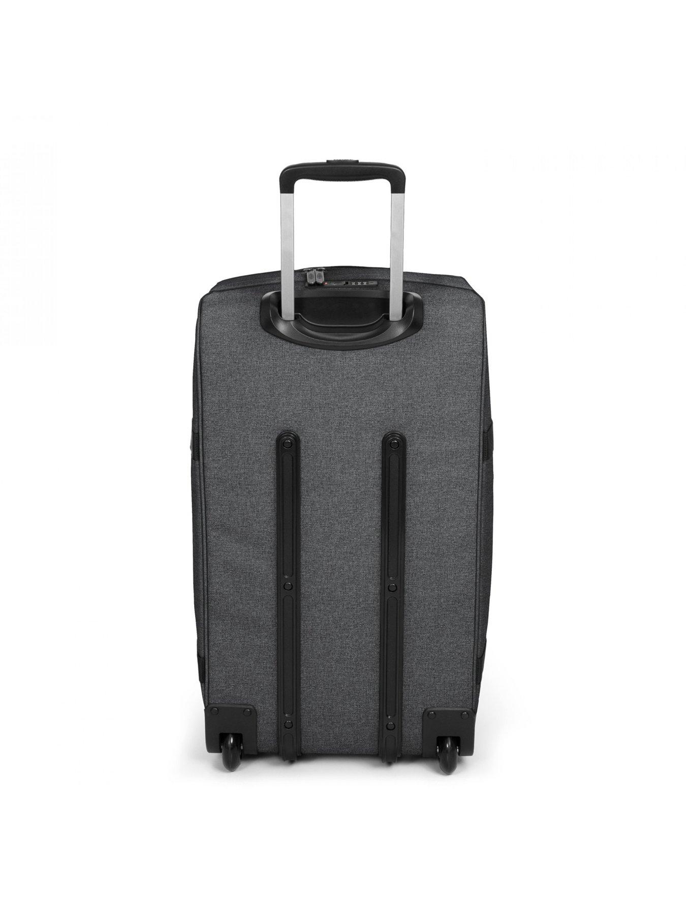 This Eastpak Transit'r medium travel trolley is updated with even more features.SAFE AND SECURELoad up the double compartments and secure your belongings with the integrated lock. QUALITY CONSTRUCTION This durable luggage features aluminium tubes, protective skids and diamond embossing on the handle, all in a stylish Black Denim colourway. SPACIOUS 2 main compartments with a zip-fastening front pocket ensure that you get the most out of your luggage space. MADE FOR YOUR COMFORT This stylish suitcase features a telescopic handle, top handle and dual front carry handles, a smooth-wheeling system and integrated TSA 3-digit code lock, VEGAN-FRIENDLY No animal products are used to make this 100% vegan product. DESIGNED TO GO THE DISTANCE With a 30 Year Warranty, you can rest assured that this case will serve you well for years to come. MEASUREMENTS