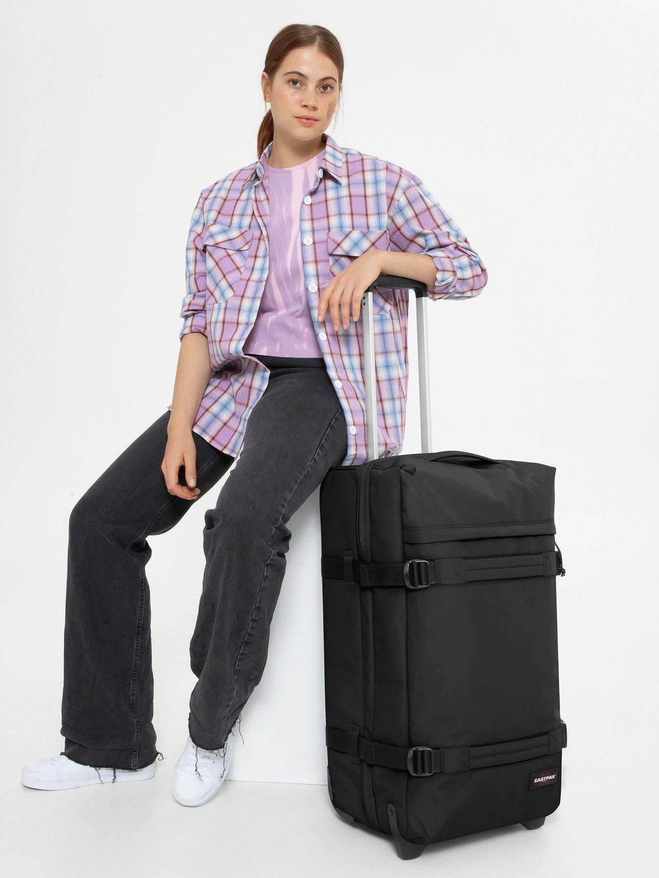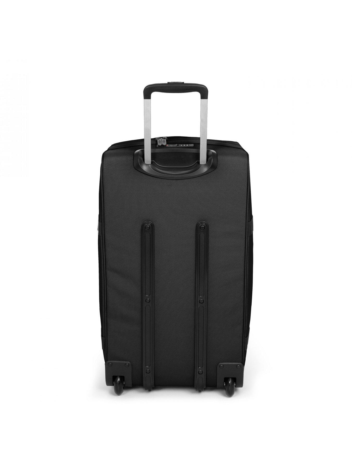 This Eastpak Transit'r medium travel trolley is updated with even more features.SAFE AND SECURELoad up the double compartments and secure your belongings with the integrated lock. QUALITY CONSTRUCTION This durable luggage features aluminium tubes, protective skids and diamond embossing on the handle, all in a stylish Black colourway. SPACIOUS 2 main compartments with a zip-fastening front pocket ensure that you get the most out of your luggage space. MADE FOR YOUR COMFORT This stylish suitcase features a telescopic handle, top handle and dual front carry handles, a smooth-wheeling system and integrated TSA 3-digit code lock, VEGAN-FRIENDLY No animal products are used to make this 100% vegan product. DESIGNED TO GO THE DISTANCE With a 30 Year Warranty, you can rest assured that this case will serve you well for years to come. MEASUREMENTS