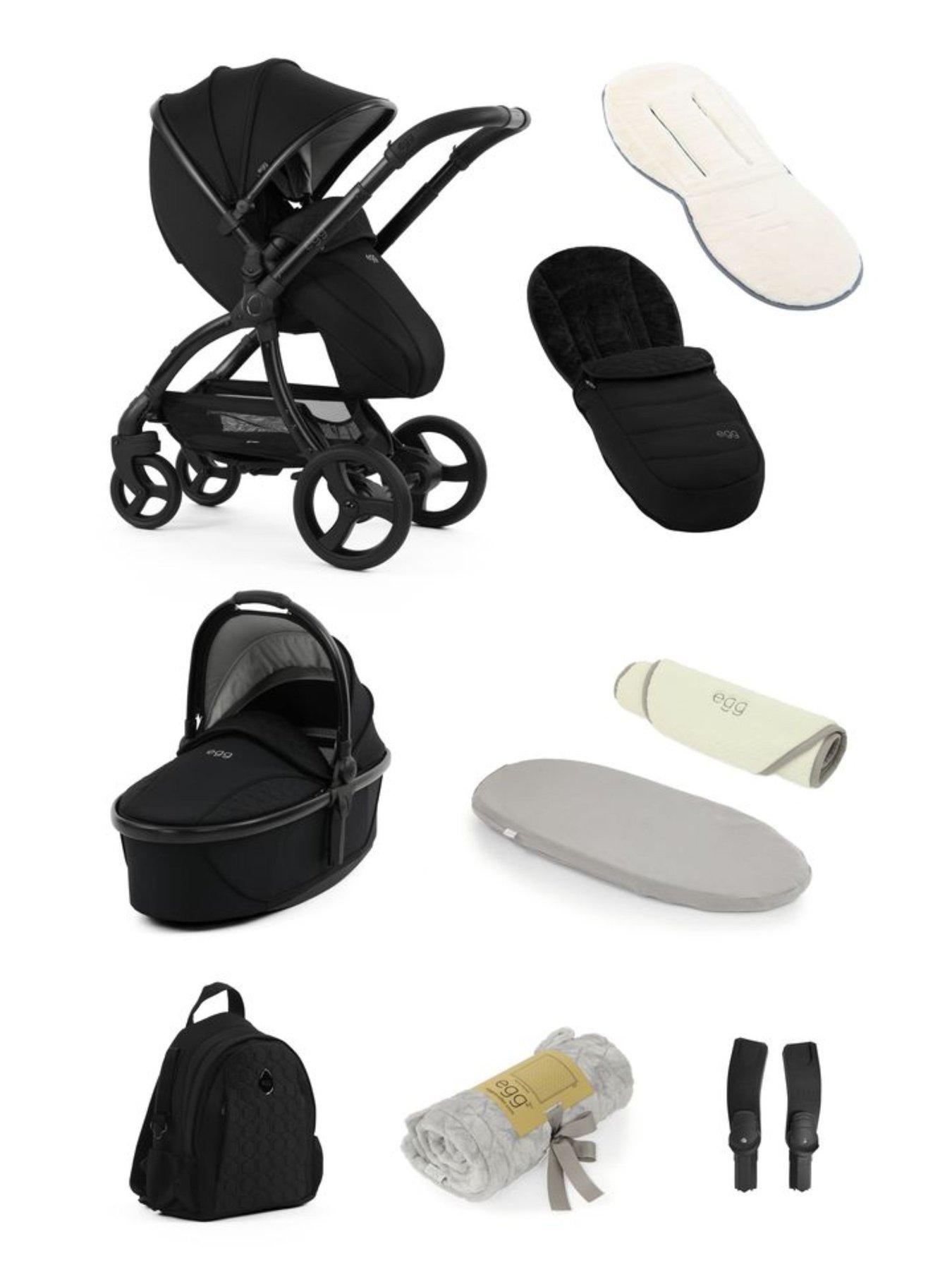 egg3 egg3 Snuggle Bundle - PantherThe egg3 Stroller showcases an enhanced, extendable canopy, perfect for day-time naps or so you can fully protect your little one from the sun with its 50+ UPF fabrics. The canopy also incorporates a ventilation window for optimal airflow, which can be seamlessly closed using magnets sewn into the fabric. Offering a three-position recline and affixed either parent or world facing, the egg3 seat is designed to promote comfort for longer. To make parenting easier, the egg3 includes a new one-pull harness. Simply clip in your baby and pull the strap to secure your baby perfectly every time. The seat also features an easily adjustable headrest and harness, accessed discreetly via the rear, to grow with your baby. Featuring a âone-hand fold' the egg3 chassis is compact when folded and free-stands, with the handle clear from the ground. It's large puncture-free tyres feature a unique egg-shaped tread pattern, with the stroller leaving its mark wherever it goes. Engineered for comfort, superior handling and added durability, egg3 has been fitted with Tru-Ride technology as standard for multi-terrain strolling. The egg3 Carrycot creates a perfect haven for the first six months of your child's life, providing a luxurious and protective environment that ensures your baby's safety in a lie-flat position. Featuring a new sustainable Sorona mattress, which is washable, breathable and chemical free. The new egg3 Carrycot also includes an extra-large hood with ventilation window and rocking rails on its base, so you can soothe your baby to sleep. For growing families or twins, the egg3 can be transformed for two using the egg2/3 tandem adaptors or opt for the new egg Ride-on-Board with Seat for toddlers with a little more independence. Available to purchase a 9-piece snuggle package, including: egg3 stroller, carrycot, carrycot sheets, sherpa carrycot mattress topper, backpack, footmuff, fur seat liner, blanket and the multi car seat adaptors.
