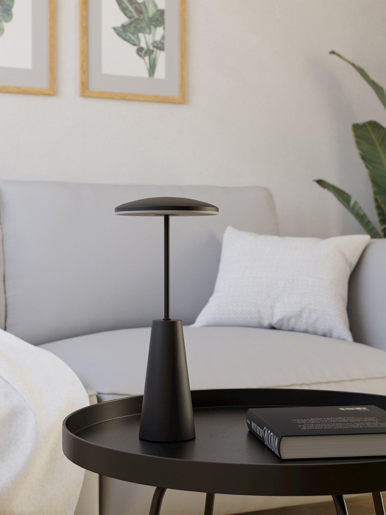 EGLO Piccola Black LED Touch Table LightThe Piccola LED Table Lamp - your versatile lighting companion that combines style, functionality, and convenience. The Piccola LED table lamp boasts a sleek steel body with a brushed brass finish. It's a statement piece that complements any decor.The integrated LEDs offer a tuneable white light, allowing you to set the mood: ? Neutral white: For focused tasks or reading. ? Cool white: Ideal for a crisp, modern ambiance. ? Warm white: Perfect for cozy evenings. Adjust the brightness using the touch dimmer - from subtle glow to full illumination.The Piccola lamp features a USB port for charging. Take it outdoors, to your patio, or even on a camping trip - it's not just for home use. With an IP54 protection rating, this lamp can handle the elements. It's splash-proof, making it suitable for outdoor spaces. Illuminate your garden, balcony, or create a magical atmosphere during outdoor gatherings. Dimensions: - Height: 280 mm - Diameter: 130 mm - Base Diameter: 70 mm - Net Weight: 0.78 kg Technical Details: - Protection Class: 3 - Operation Voltage: 5V DC - Switch Type: Touch dimmer - Battery: Yes (Li-ion; 2600mAh)