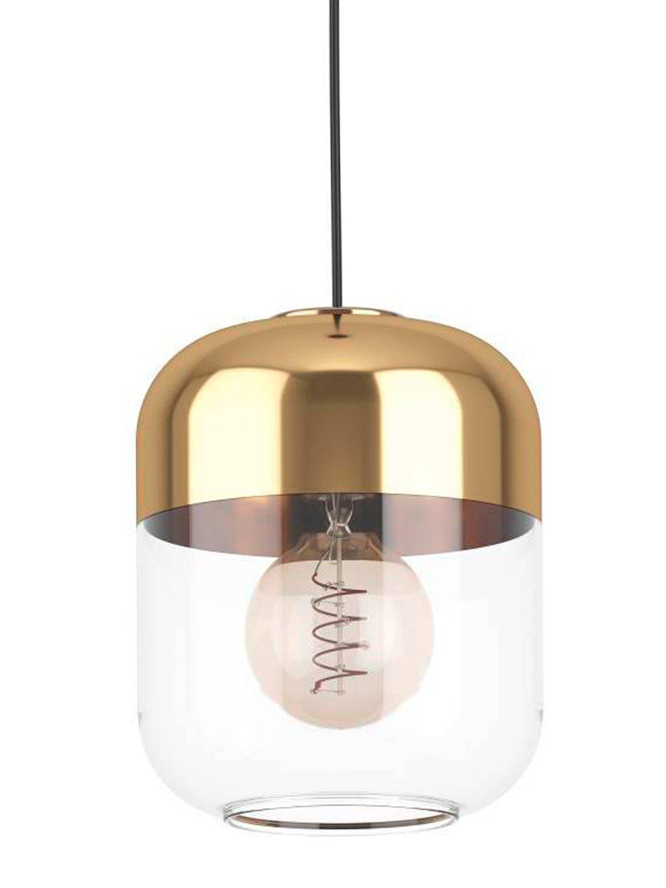 Eglo Maryvilla Gold & Clear Single Pendant LightThe Maryvilla pendant light features a rounded lampshade made of clear glass with gold detailing at the top.The product includes a black metal canopy with a high-quality black textile cable. The pendant light blends beautifully with modern interiors, providing stylish lighting in any space, whether in the living room or dining room. The product has an E27 lamp holder and requires 1 x E27 lightbulb, which is not included.