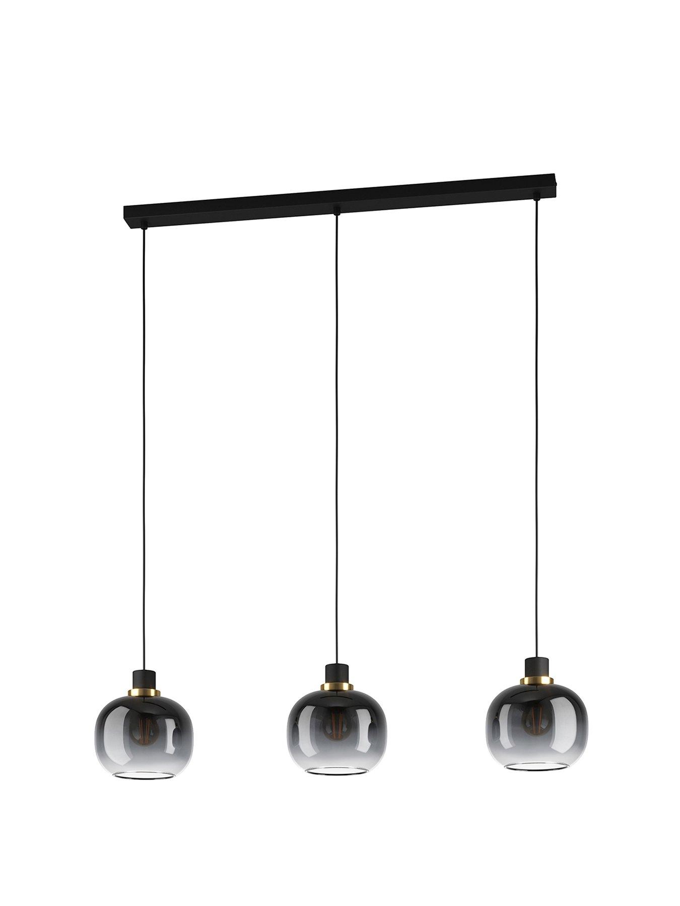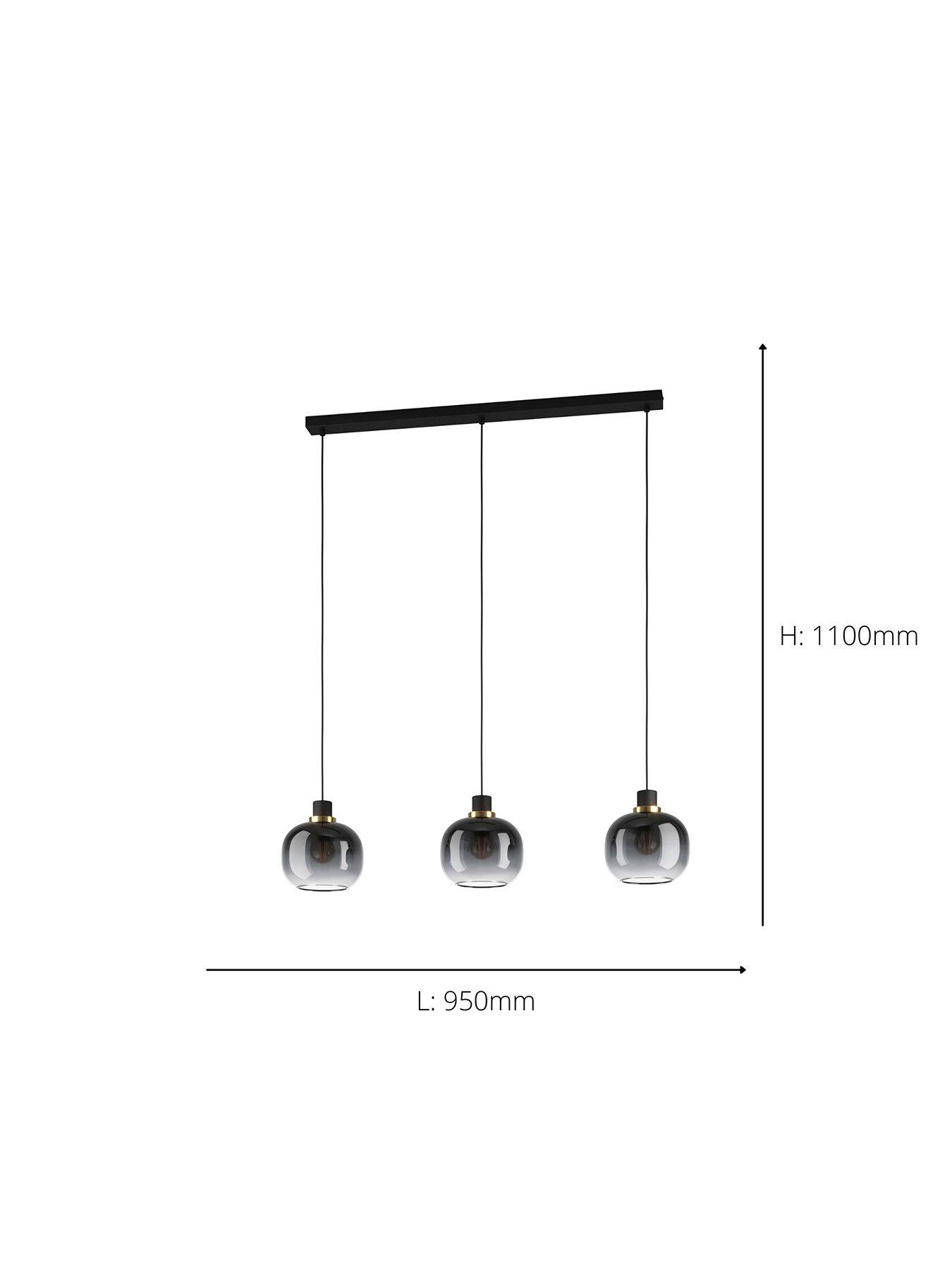 Eglo Oilella Black To Grey Gradient Hanging 3-light Pendant LightLooking for some glass opulence to bring that wow factor to your home?Then look no further than the Oilella pendant light. The Oilella features three spherical vaporised glass lampshades with a sophisticated black and grey colour scheme. Each lampshade has a black steel accent and a brushed brass decorative element. Due to the appealing earthy tones, the design will light up your space beautifully and blend in with any interior design or style, whether in the living room or over a dining room table. The product has E27 lamp holders and requires 3 x E27 lightbulbs, which must be purchased separately.