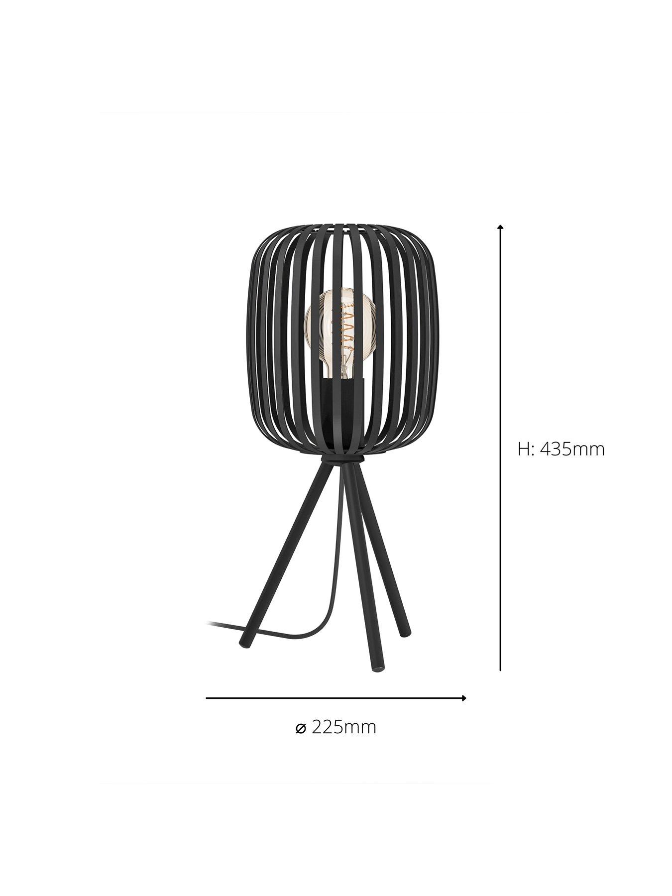 Eglo Romazzina Black Caged Tripod Table LampThe Romazzina table lamp adds modern style to your home with its striking design.The table lamp features a caged lampshade with a black finish and a tripod base. The product has a semi-visible lightbulb element, which produces a dramatic lighting effect when illuminated. The table lamp is a bold addition to a minimalist or modern home with its statement design. The product requires 1 x E27 lightbulb, which is not included.