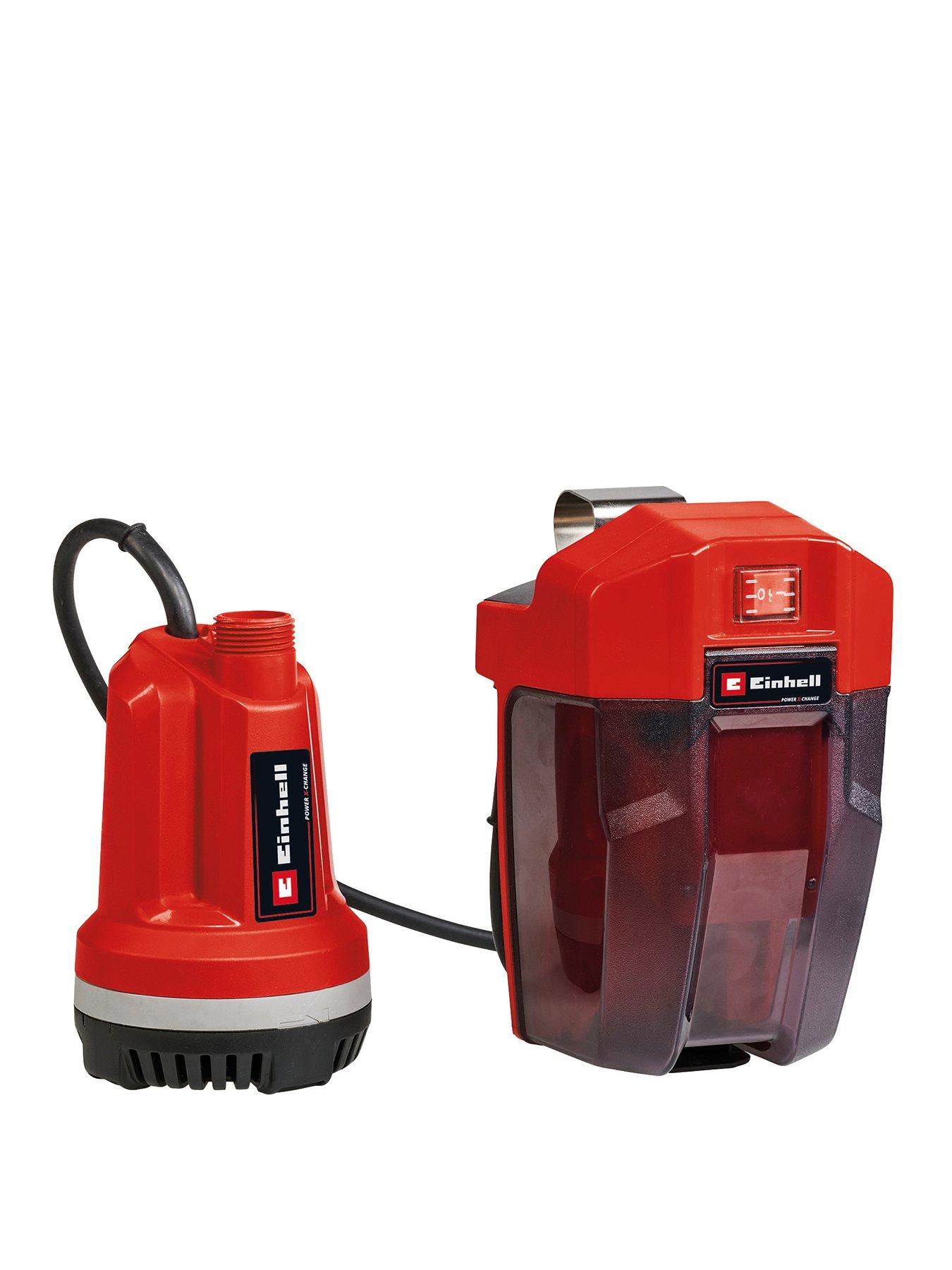 Einhell PXC Cordless Clear Water Rain Barrell Pump - GE-PP 18 RB Li - Solo (18V without battery)The cordless submersible and rainwater pump GE-PP 18 RB Li is a powerful member of the high-quality lithium-ion-powered Power X-Change family. The pump is designed for a range of applications. Use as a submersible pump with a long cable connection, e.g. in a tank or well, or with the adjustable connecting pipe, e.g. for a rainwater butt: Water your garden without needing a mains socket - flexible in application and powerful in operation. The powerful motor generates a high delivery pressure of more than 2Â bar, which means running a lawn sprinkler or a garden sprayer is no problem at all. The extension tube with its convenient mounting bracket and movable water connection with stop valve for custom positioning of the garden hose, is steplessly telescopic. The separate, splash-proof battery box with hanger and wall mount is equipped with a convenient option to store the cable on the housing. The high-quality pump body and the battery box are made of impact-resistant plastic. One 18-volt Power X-Change battery, which is not included in the set, is required for operation. The battery and charger are available separately, for example in a convenient starter set.
