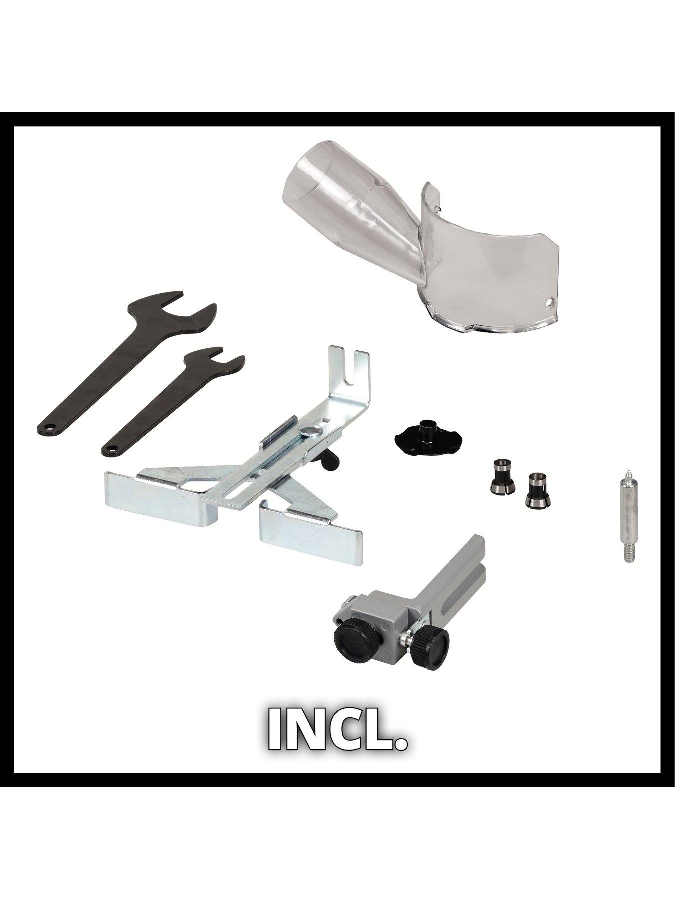 The Einhell PXC Cordless Palm Router is a versatile and handy tool that’s perfect for your DIY woodworking projects.This cordless palm router is all about giving you the freedom to work anywhere without being tethered to a plug socket. Whether you’re edging, carving, or creating intricate designs, this tool is designed to help you achieve professional results with ease.POWER X-CHANGE It’s part of the Einhell Power X-Change family, so any 18V PXC battery will power it up. Just keep in mind, the battery and charger are sold separately - please see code RR6WR. CORDLESS CONVENIENCE With no wires holding you back, you can work anywhere. BRUSHLESS MOTOR The router is equipped with a PurePOWER brushless motor, which means it’s more powerful and has a longer running time compared to traditional motors. Plus, there’s a 10-year warranty on the motor after registration. SPEED DEMON It features continuously variable speed control electronics, giving you the power you need for precise woodworking. MILLING DEPTH ADJUSTMENT The milling depth is continuously adjustable, allowing for precise work on your projects. CLICK AND COLLETS It comes with collets of 6 and 8 mm to fit various router cutters. MASTERPIECE The high-quality aluminum design ensures precise milling, and it’s comfortable to handle thanks to the ergonomic design with softgrip. LIGHING THE WAY An LED light provides optimal illumination of the work area, so you can work with precision even in low-light conditions. ACCESSORIES It includes a rip fence, compass tip, guide roller, copying sleeve, and a suction adapter suitable for Einhell wet/dry vacuum cleaners.