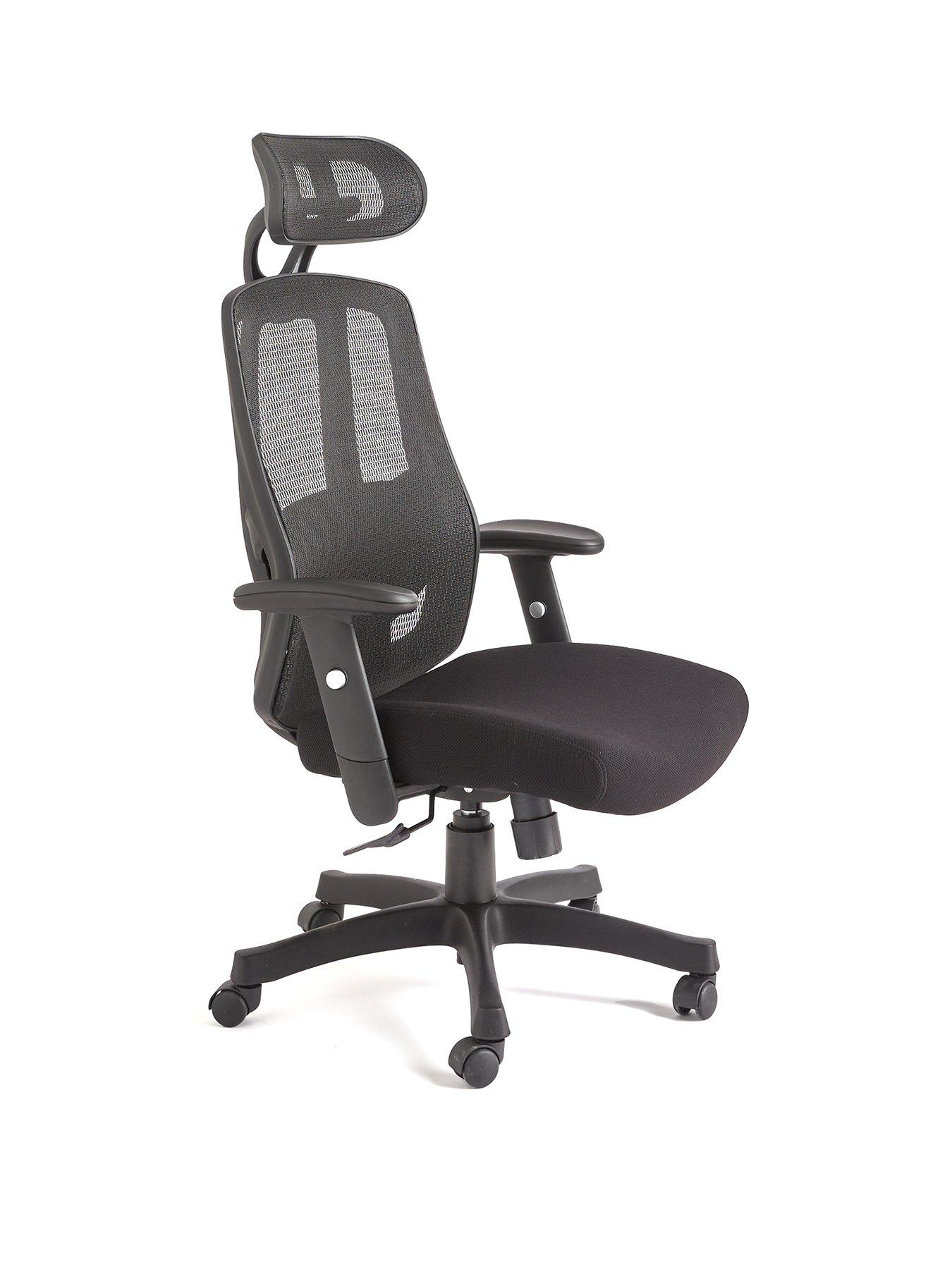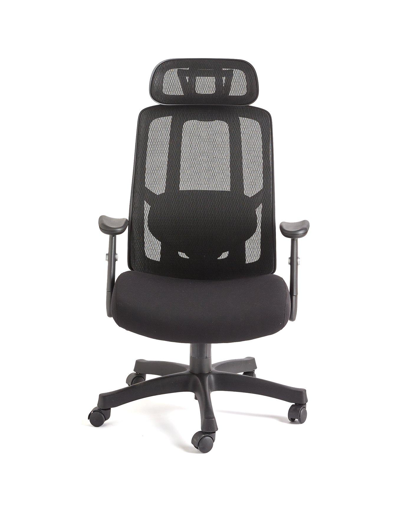Erik Office Chair in BlackAdd some comfort to your work from home days by sitting back on this Erik office chair.With a style fit for a CEO, it features sofa padding to the seat, while mesh to the back and head rests helps the air circulate freely around you during long work days or study sessions. It's finished with adjustable arms, while the height can be adjusted between 115 - 125 cm so it's easy to find your perfect position. In a bold black shade, it's fitted with castors for fuss-free movement around your space. Dimensions: Height 115-125, Width 70, Depth 70 cm