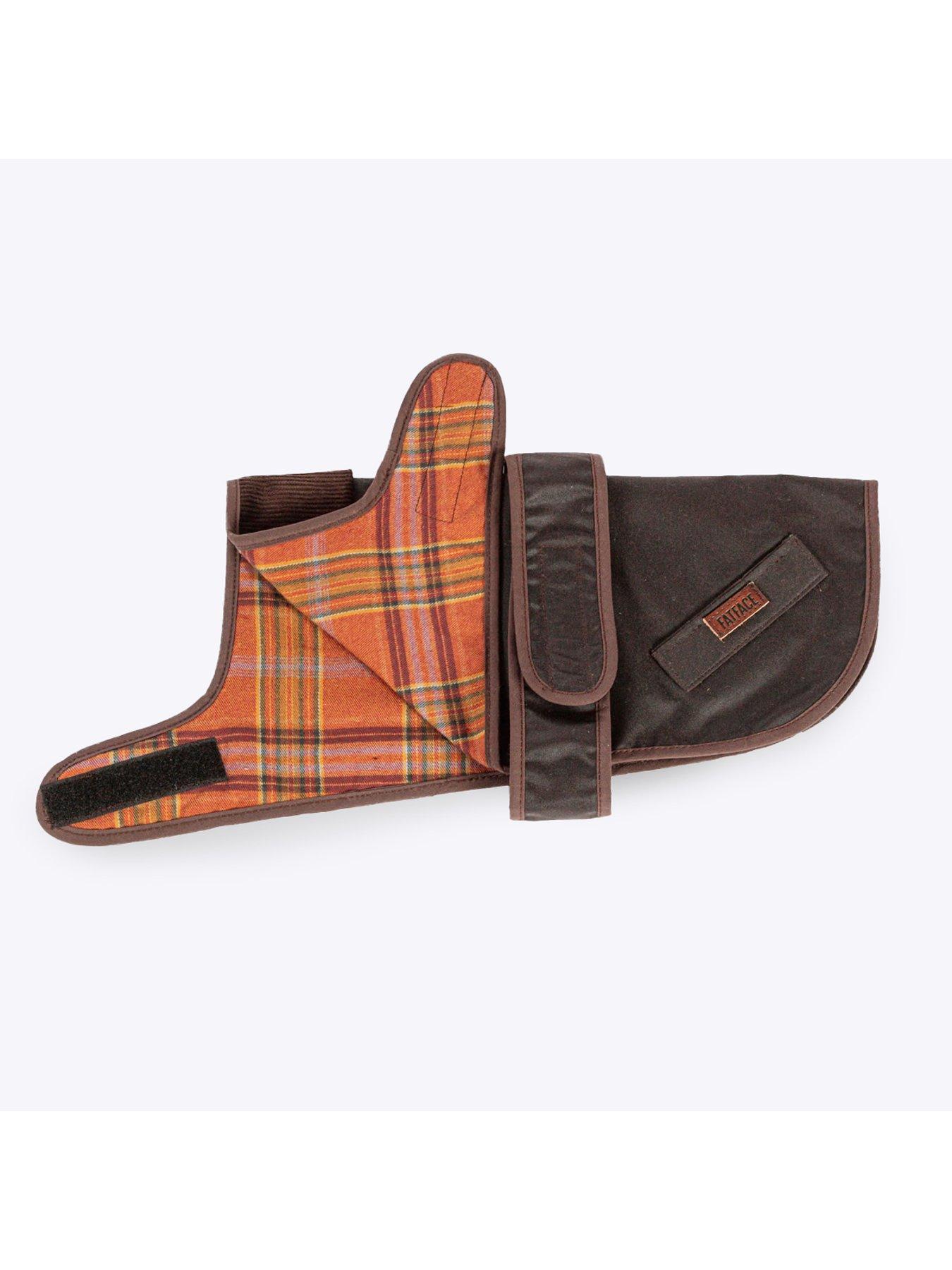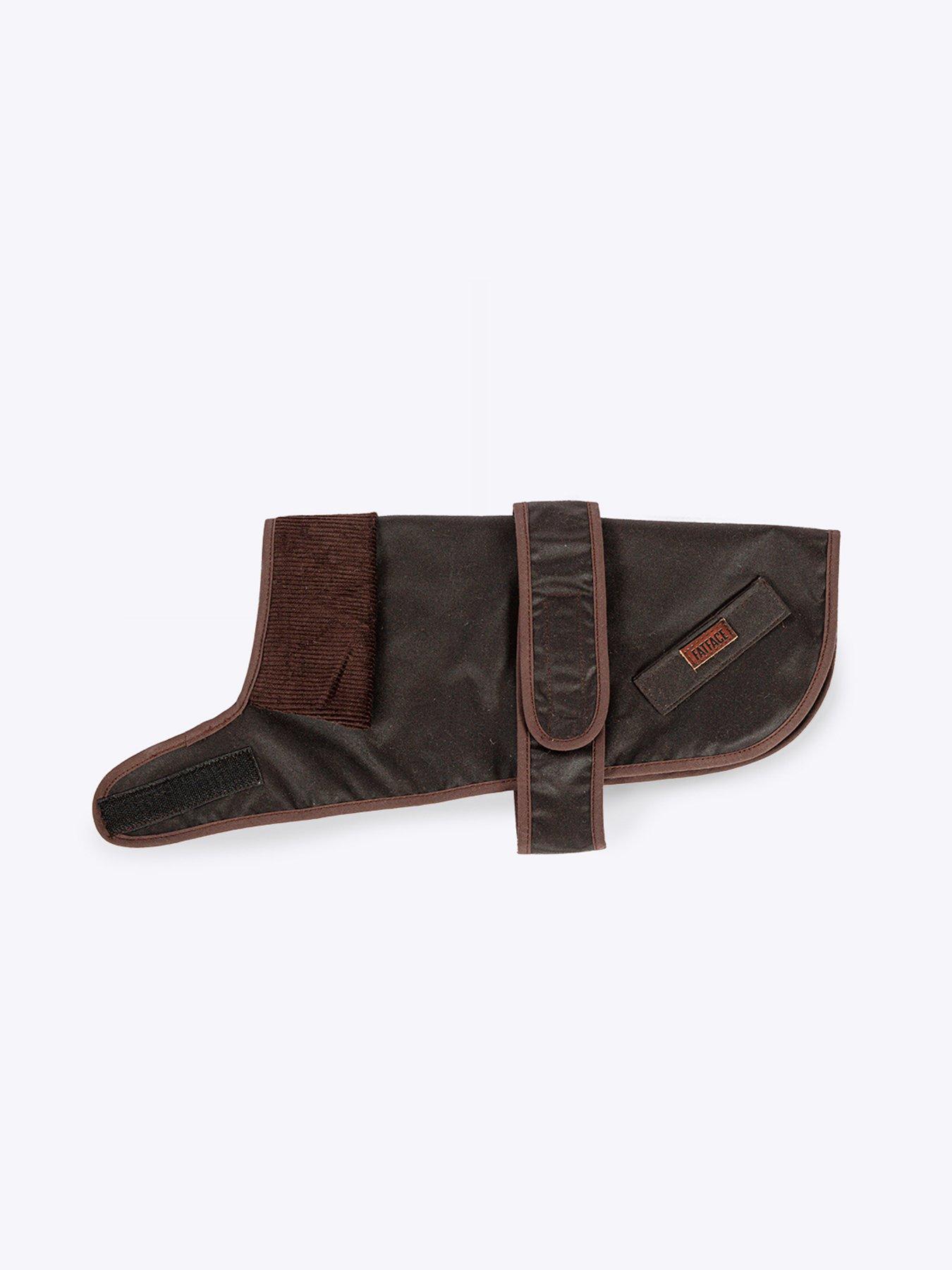 Dream Paws Sussex Wax Dog CoatFatFace Sussex Wax Dog Coat This chocolate coloured wax coat is the perfect attire for cold weather! Made in the UK. Made with naturally water resistant wax and a cosy check lining for warmth. Adjustable velcro fastenings. Extra Small - 35cm - Coat measures approximately 35x67x0.5cm Small -40cm - Coat measures approximately 38x76x0.5cm Medium - 45cm - Coat measures approximately 42x84x0.5cm Large - 50cm - Coat measures approximately 48x86x0.5cm Extra Large - 55cm - Coat measures approximately 53x93x0.5cm
