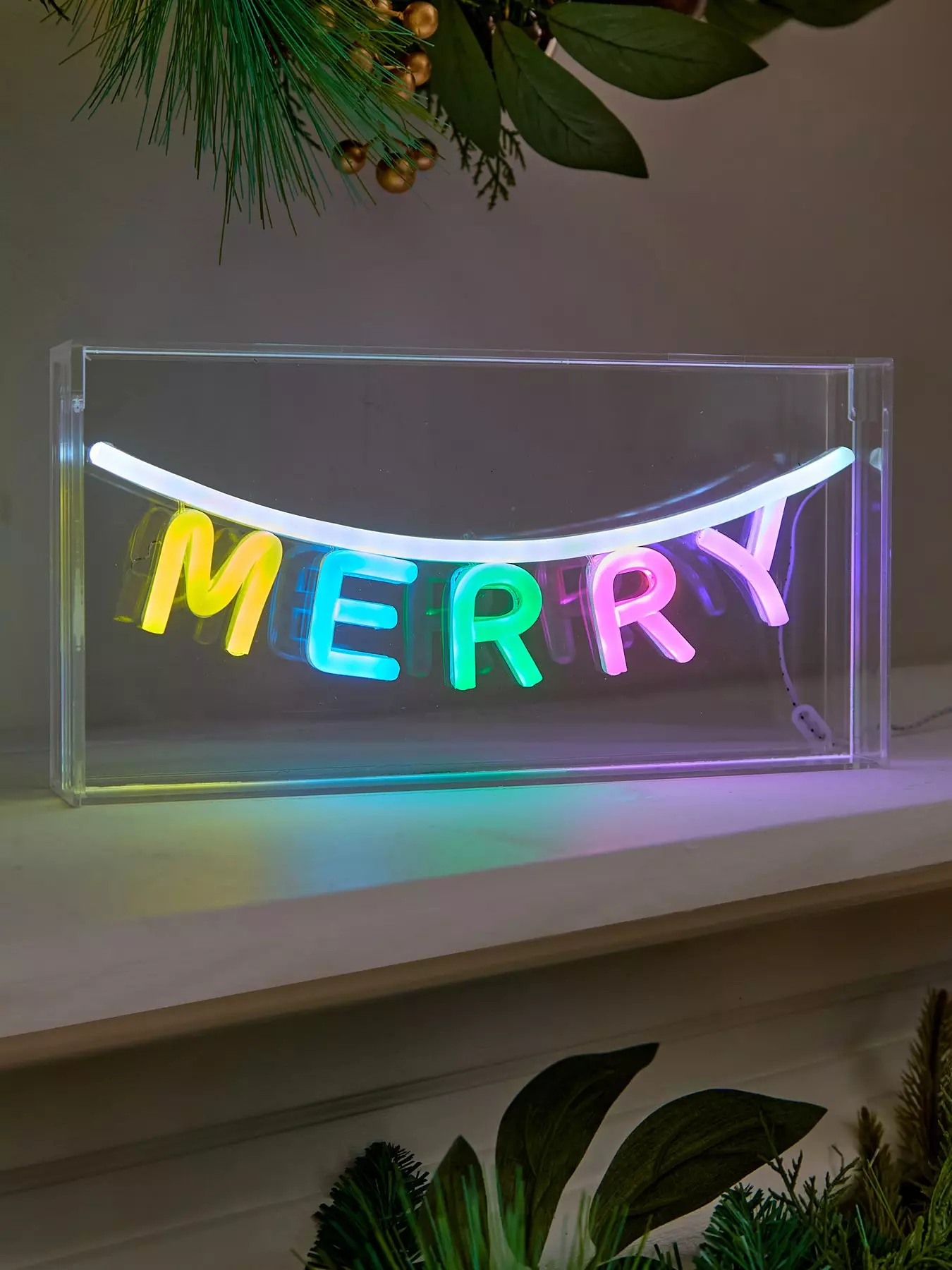 Festive30 cm Neon Light Up Merry Sign Christmas Decoration