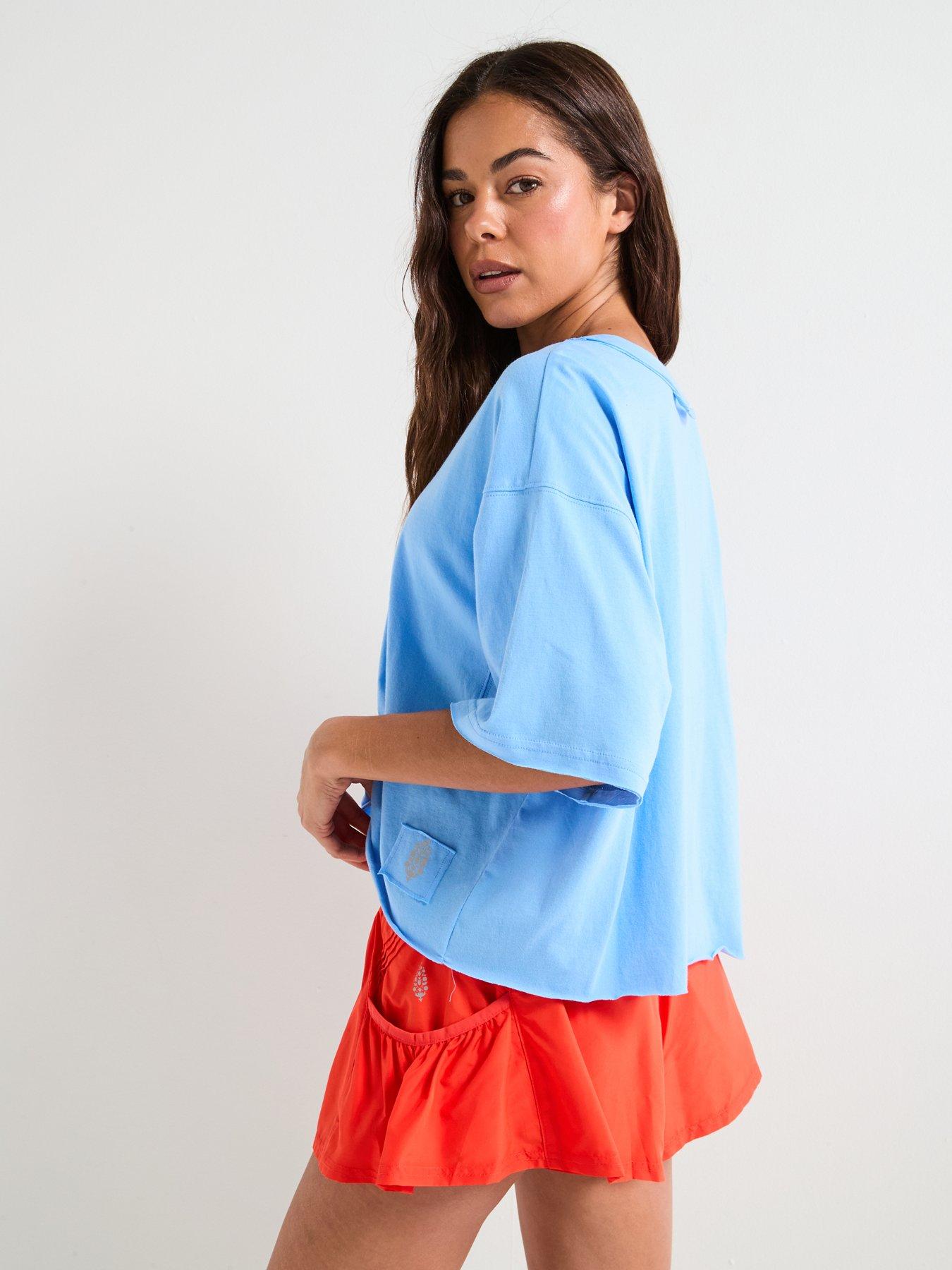 • Your favorite pre- and post-workout tee now featuring an oversized buti logo graphic at front with the same cropped fit and raw-edge trim.