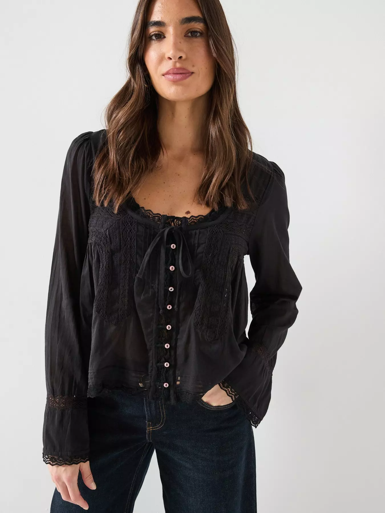 FREE PEOPLELong Sleeve Evermore Blouse - Black