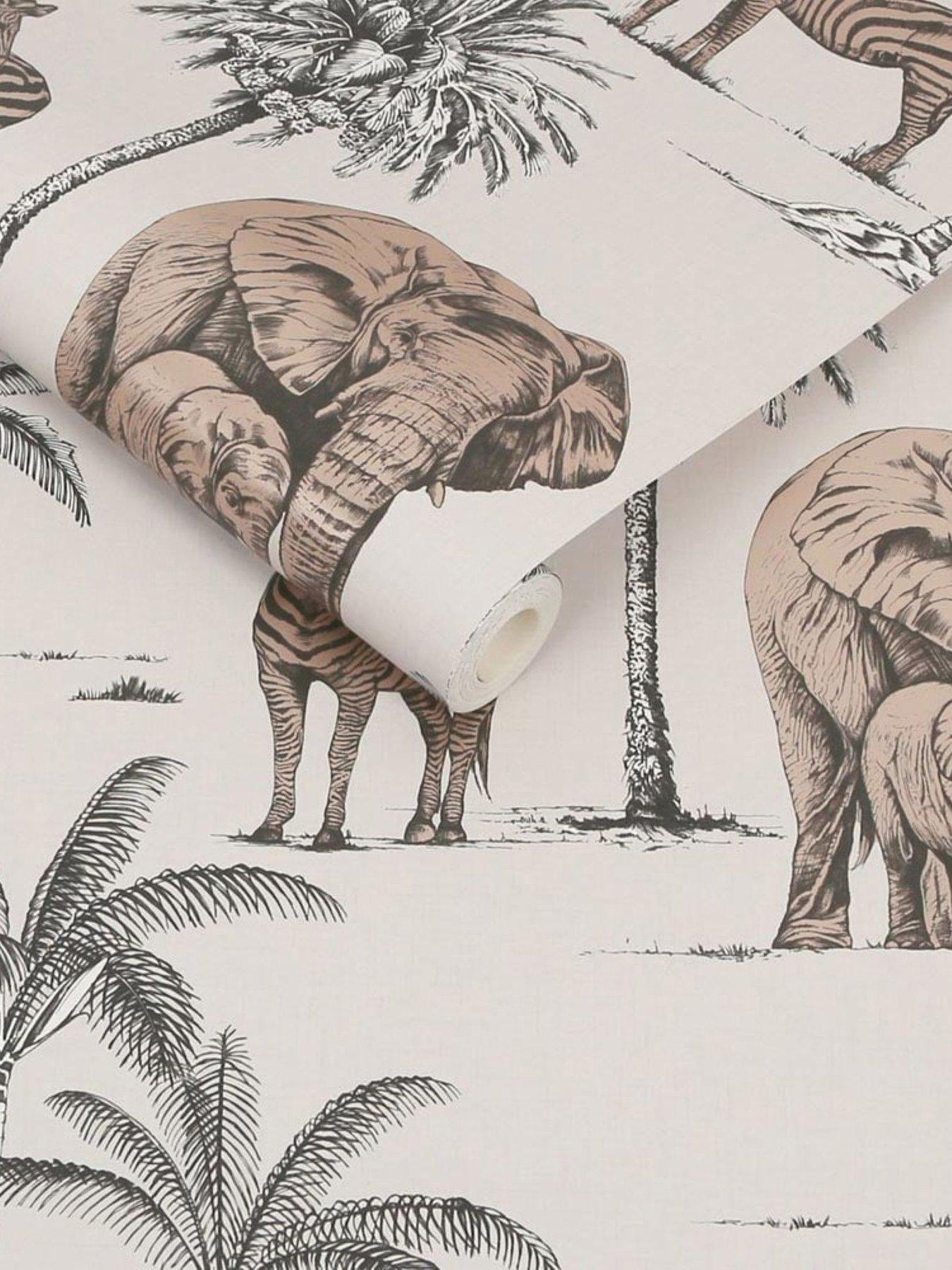 Fresco Kenya Rose Gold WallpaperTaking its inspiration from the plains of Africa, the Kenya Rose Gold wallpaper by Fresco offers an instant injection of subdued serenity for your interiors.The supremely soothing visuals feature tall trees and smaller bushes to draw the attention, along with zebras and elephants wandering through the neutral backdrop. Use the combination of tonal hues and distinctive art to build an arresting focal point, or revel in the calming palette by hanging it all around the room.