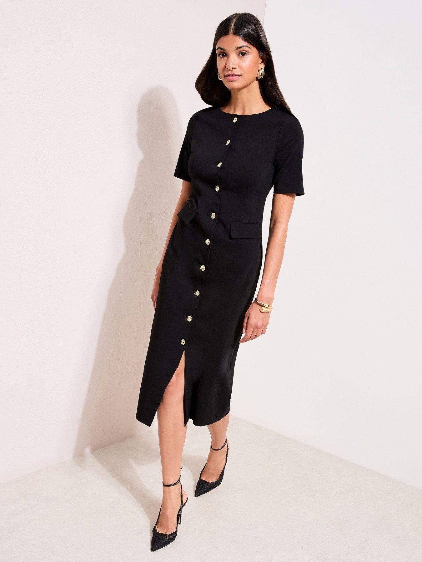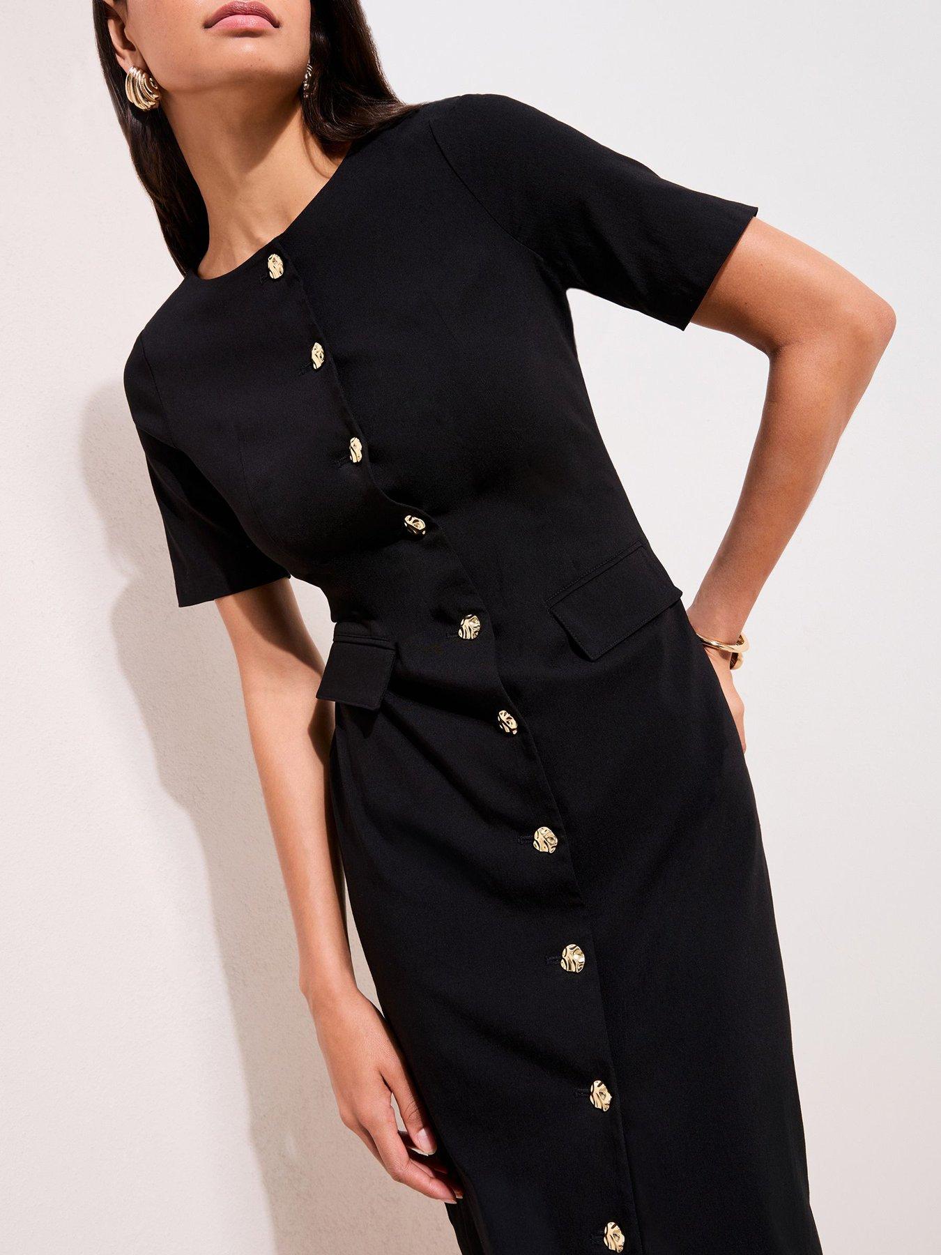 • Sculptured Stretch Button Utility Midi Dress by Friends Like These
