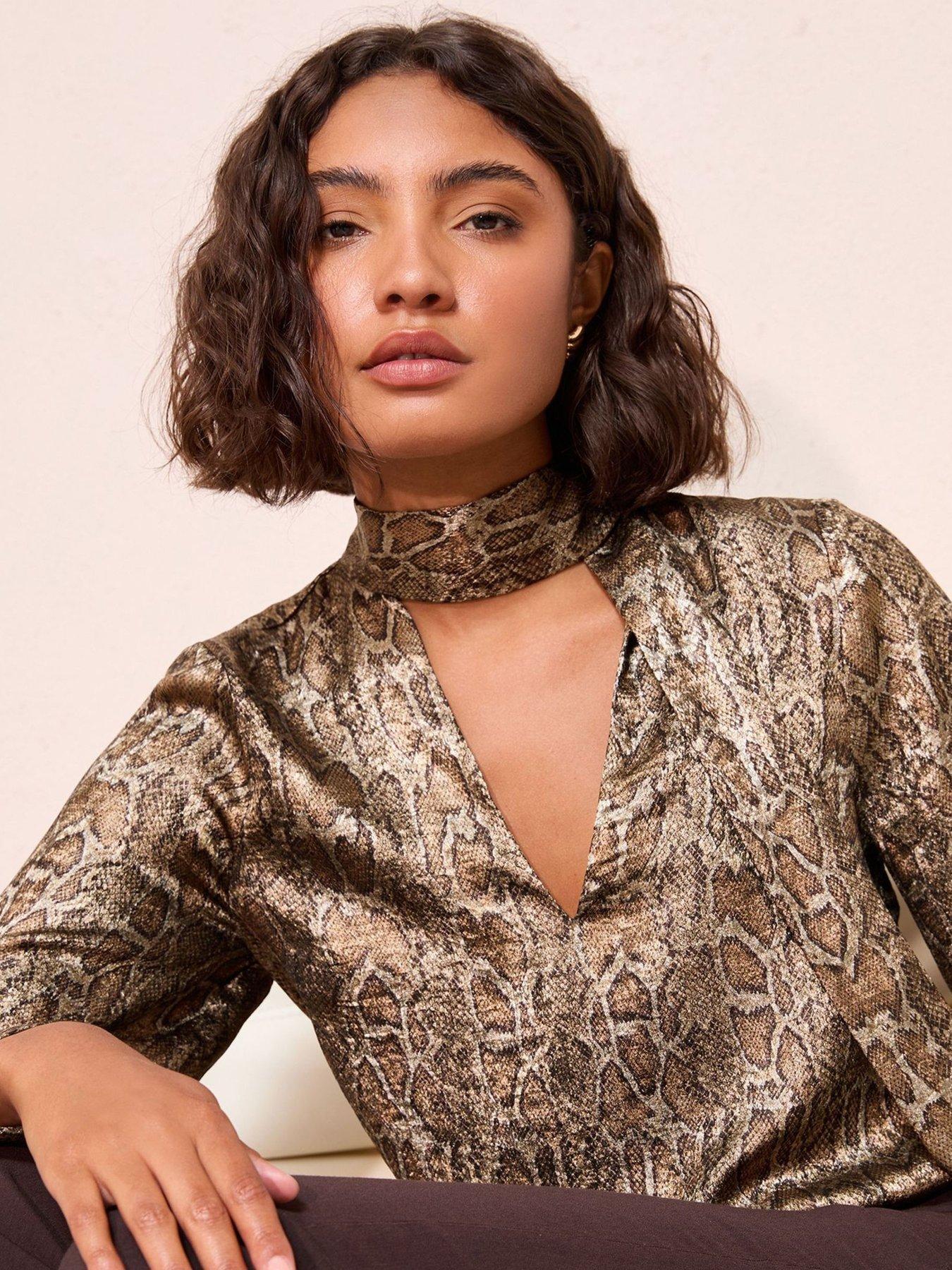 • Tie Neck Snake Foil Blouse by Friends Like These