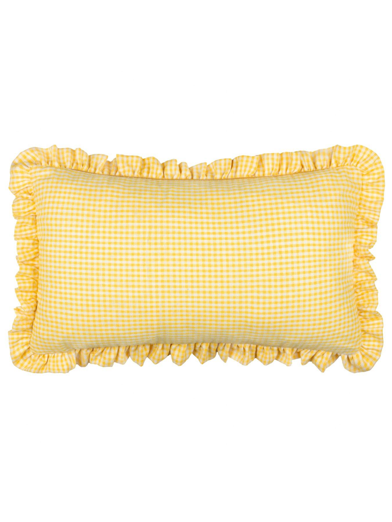 Furn Les Petite Fleurs 30x50 Polyester Cushion YellowAdd a touch of country charm to your space with the Les Petite Fleurs cushion. Made from 100% cotton, this rectangular cushion features a classic gingham print, delicate embroidered floral motifs, and a playful frill trim. It's the perfect way to bring a little bit of the outdoors in and add a soft, personal touch to your favourite armchair or sofa.