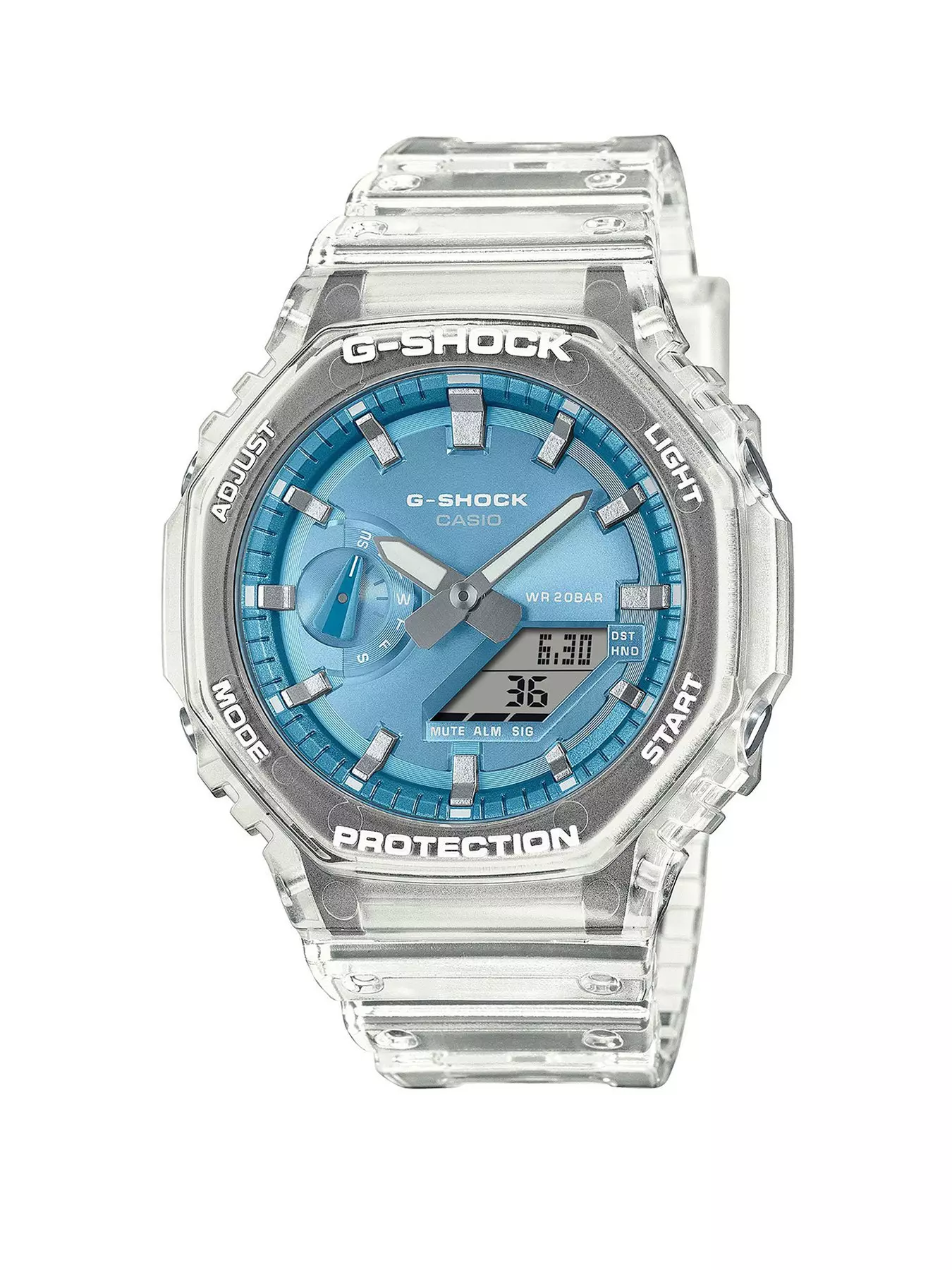 Despite its deceptively compact design, this watch is as durable and tough as any G-SHOCK on offer with 200M water resistance and shock resistance, this latest option comes in a bright metal coloured dial with a clear resin strap. Don't miss out on this new eye catching piece.- 24Hr Display: Y