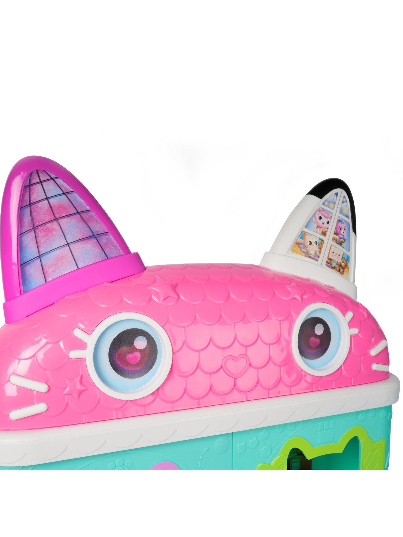 Gabby's Dollhouse International Movie DollhouseBring home the magic of Gabby's Dollhouse: The Movie. This Meow-mazing Dollhouse stands ove 60cm-tall and features lenticular eyes, for exciting pretend play. Enjoy full 360 degree play across 7 themed rooms and cat-tastic play areas. Explore using the Cat-a-vator and send deliveries down the delivery tower. This doll house playset comes with a 8.8-cm Gabby figure dressed just like in Gabbys Dollhouse: The Movie, complete with her signature cat-ears hairband, inviting meow-mazing explorations with these cat-terrific learning toys. Unbox 2 dollhouse deliveries to reveal surprise dollhouse accessories, just like Gabby does in the show, then scan the QR code to unlock a surprise in the Gabbys Dollhouse App. This set is a fun-filled way to inspire pretend play and invites meow-mazing explorations, with these adorable Gabby cat toys for kids. Gabbys dollhouse toys are purrfect gifts for kids to relive cherished moments from the Gabby film, and for creating new adventures in Gabbys dolls house, with toddler toys and toys for girls like doll house accessories and furniture, her meow-mazing cat friends and fin-tastic mermaid toys, for endless hours of cat-terrific adventures (each sold separately)