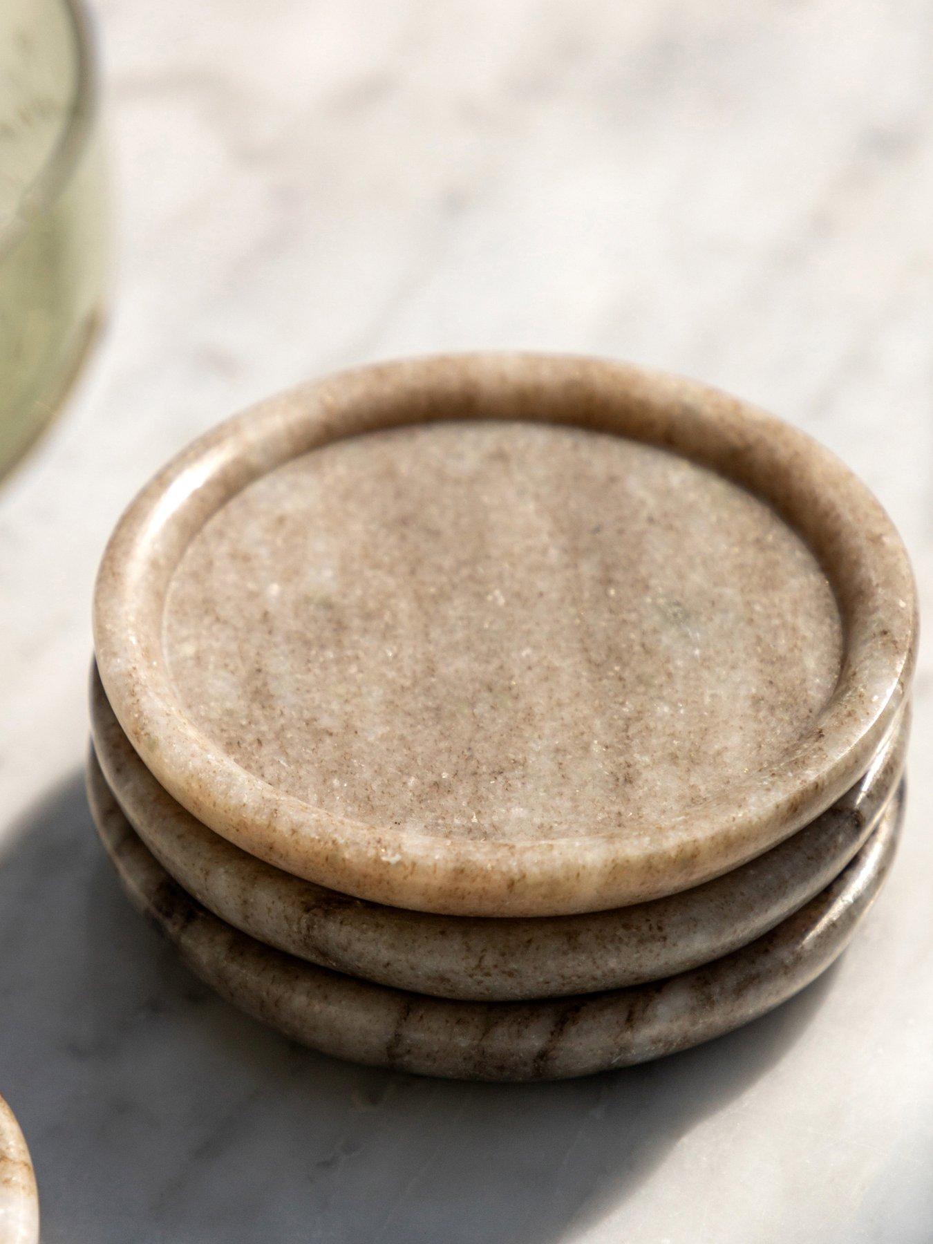 Gallery Direct Beige Marble Rounded Coasters Set/4