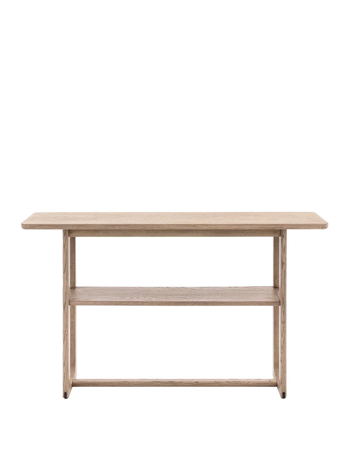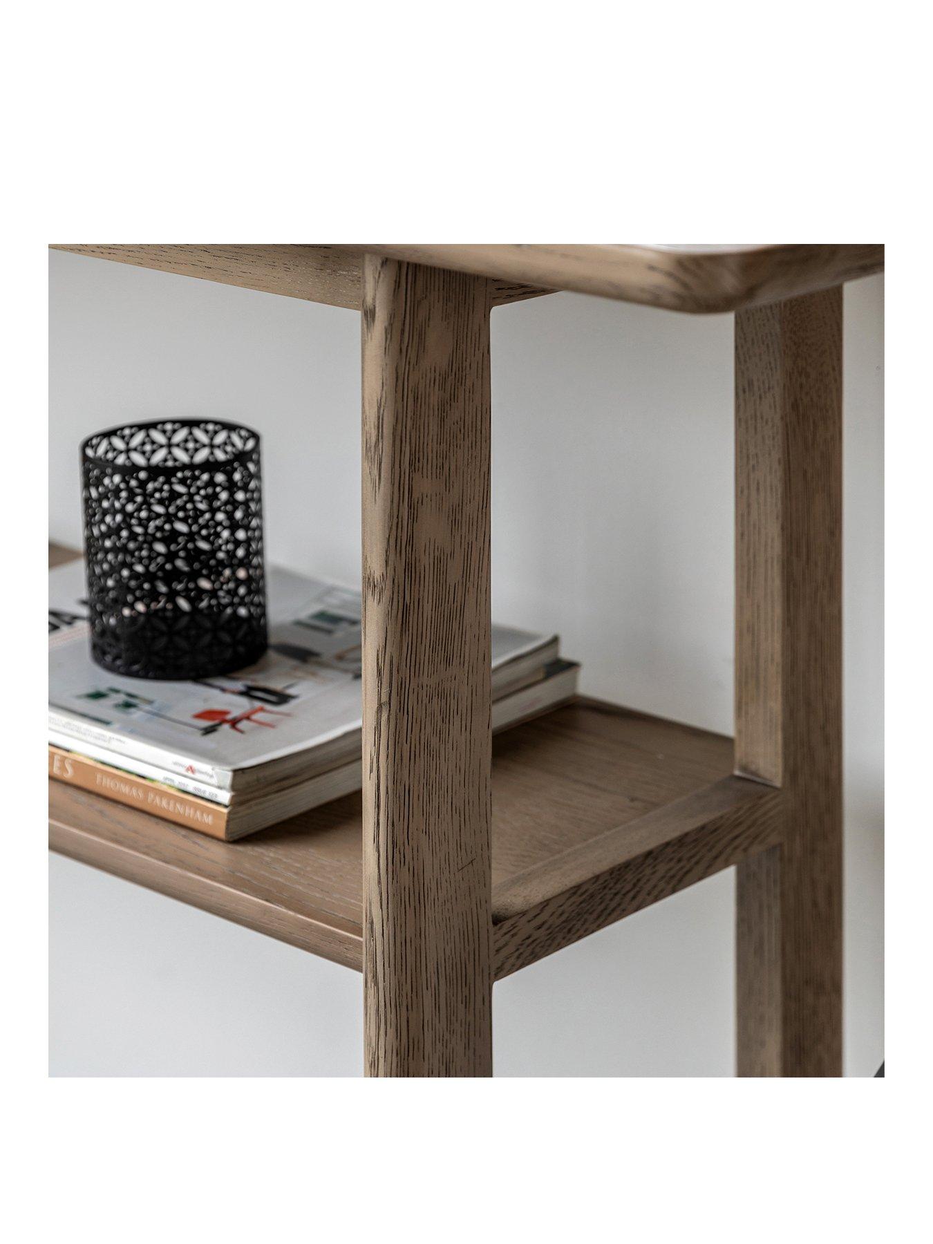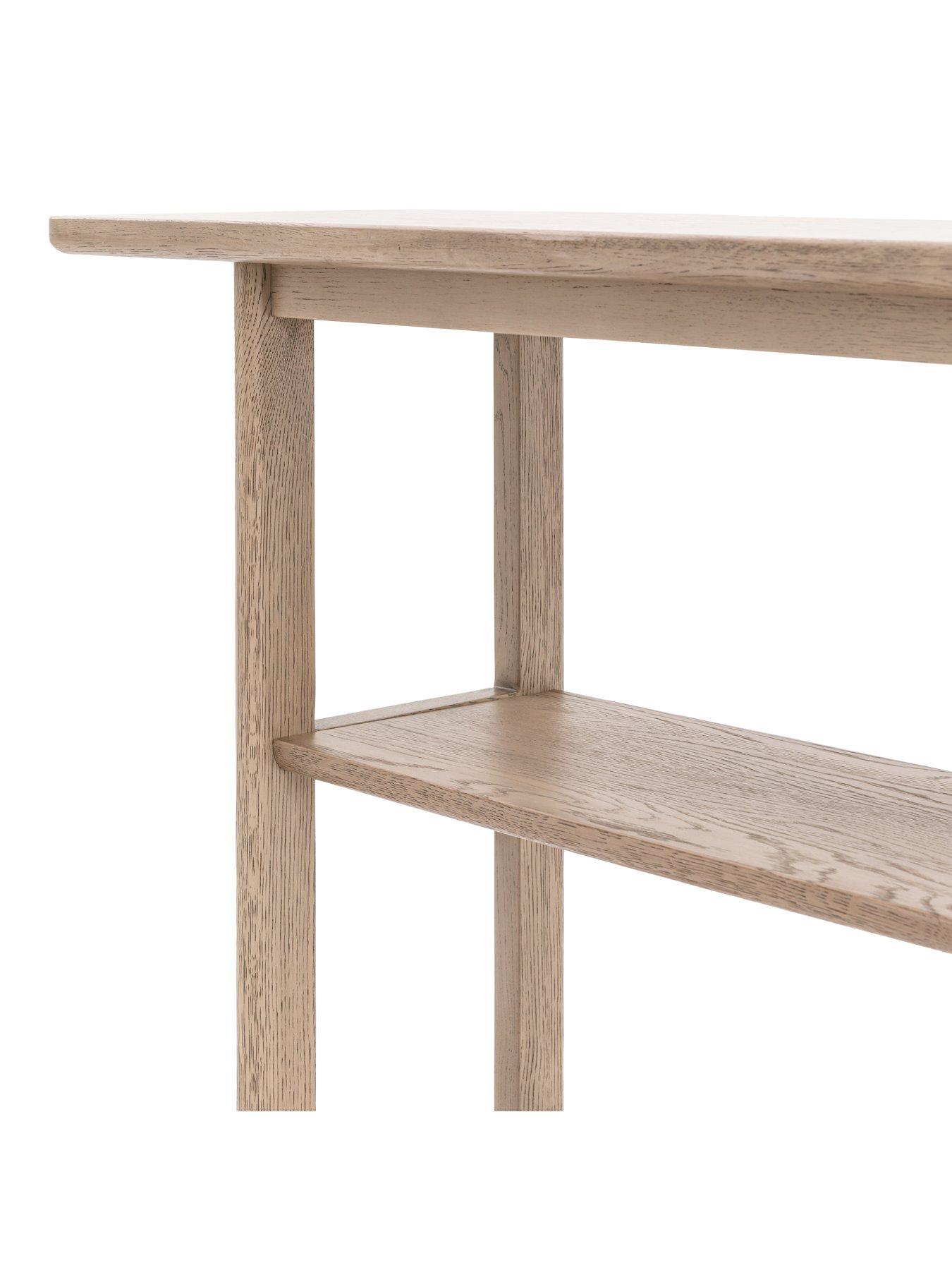 Gallery Direct Craft Console Table - Smoked OakCrafted from the finest oak and structural oak veneers where practical, this beautiful console table would suit a wide range of interiors. The elegant underframe offers structural stability combined with style and the shelf adds extra practicality to the table. The wood has a lovely smoked oak finish. The table is also available in a natural finish, and matching pieces are available.
