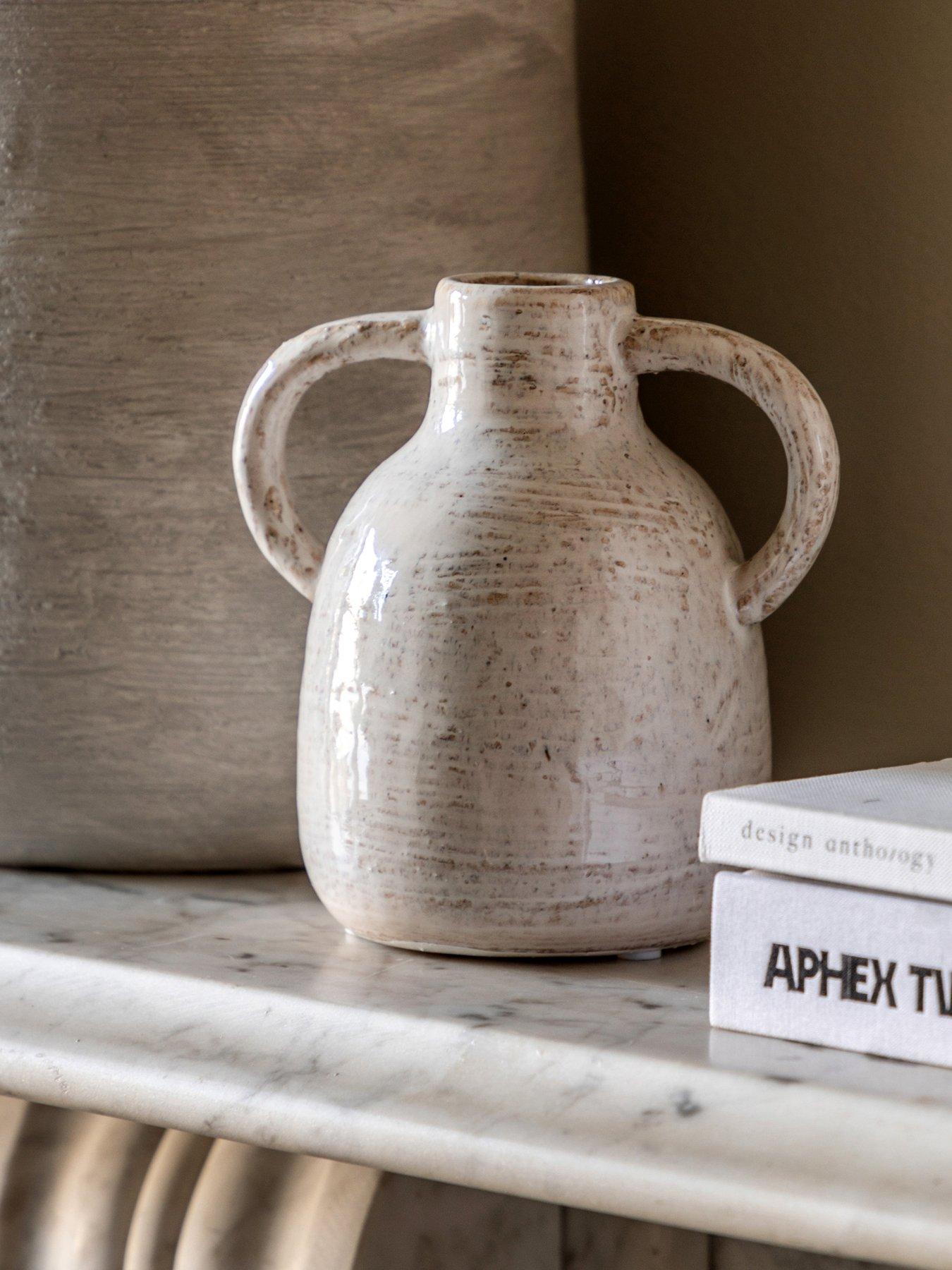 Gallery Direct Mobi Ceramic Handle VaseEarthy and artisanal, this statement vase mixes gloss glazes and textured matte ceramic finishes with a simple handmade style shape.