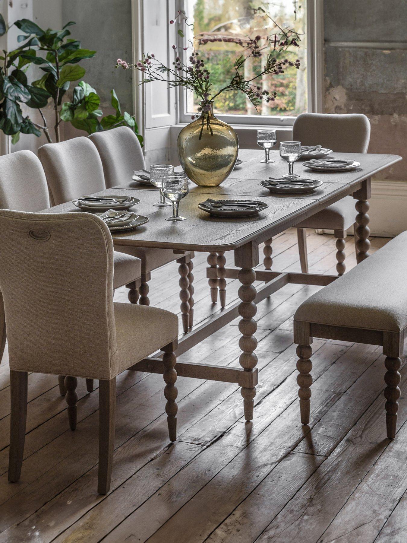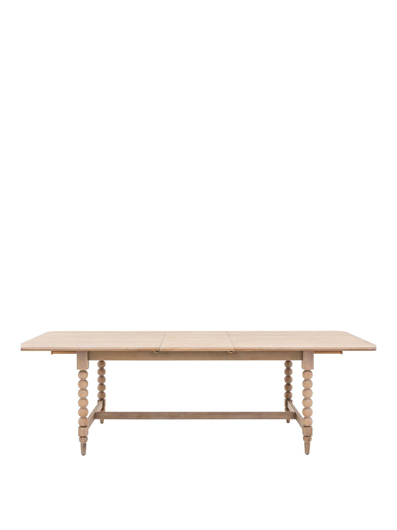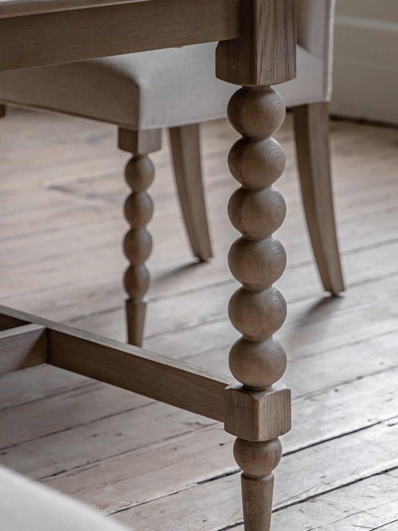Gallery Direct Piave Extendable Dining TableThis stunning dining table will make a classy addition to any dining room, and with its extending top it is both beautiful and practical. The legs feature hand-crafted bobbin detail which is created by turning the wood on a lathe, a task carried out by the finest craftsmen. The table is made using beautiful oak solids and veneers where practical, with a very subtle lime wash tone to the finish which is soft and mellow.