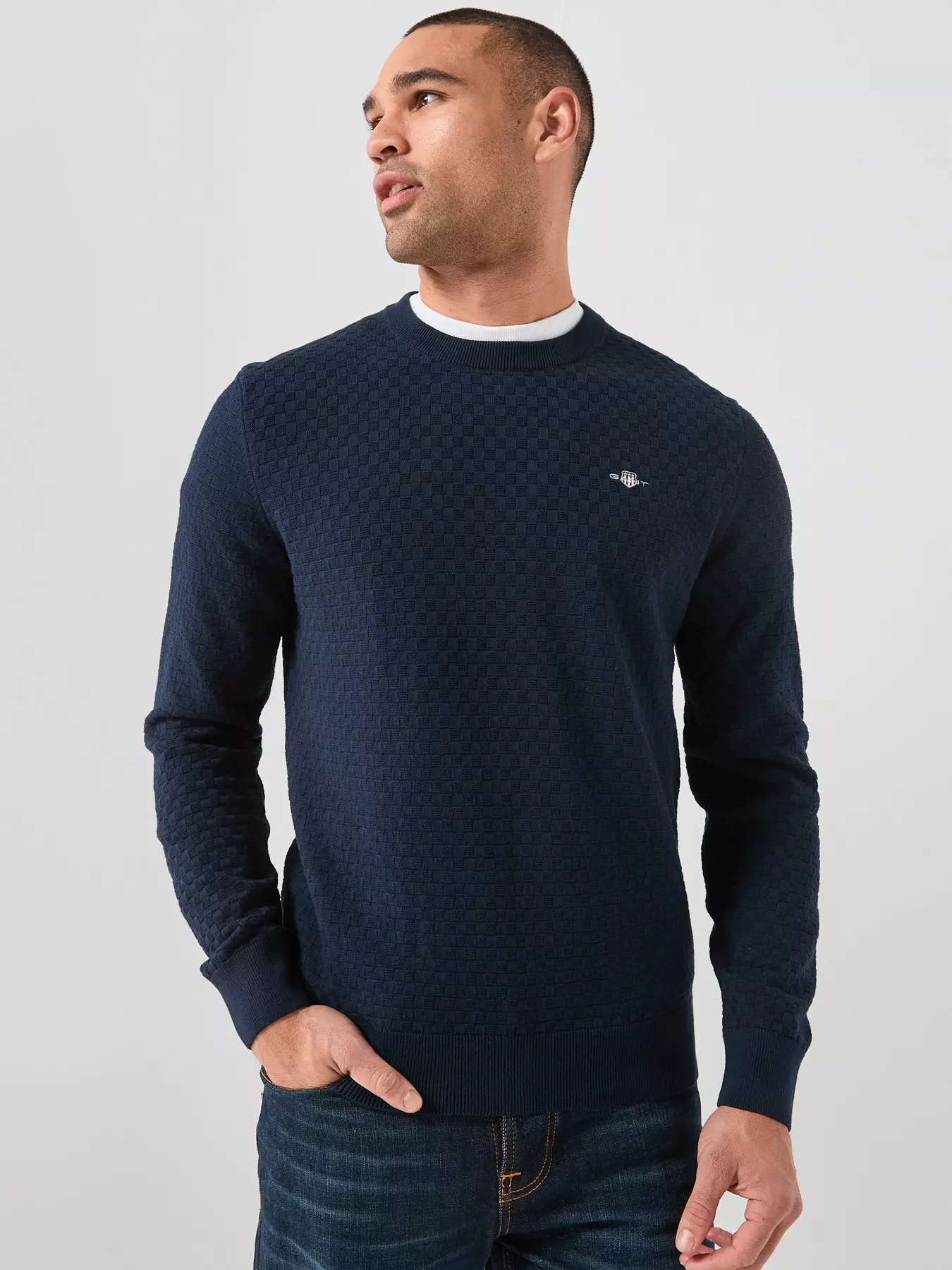 GANTMicro Textured Crew Knitted Jumper - Navy