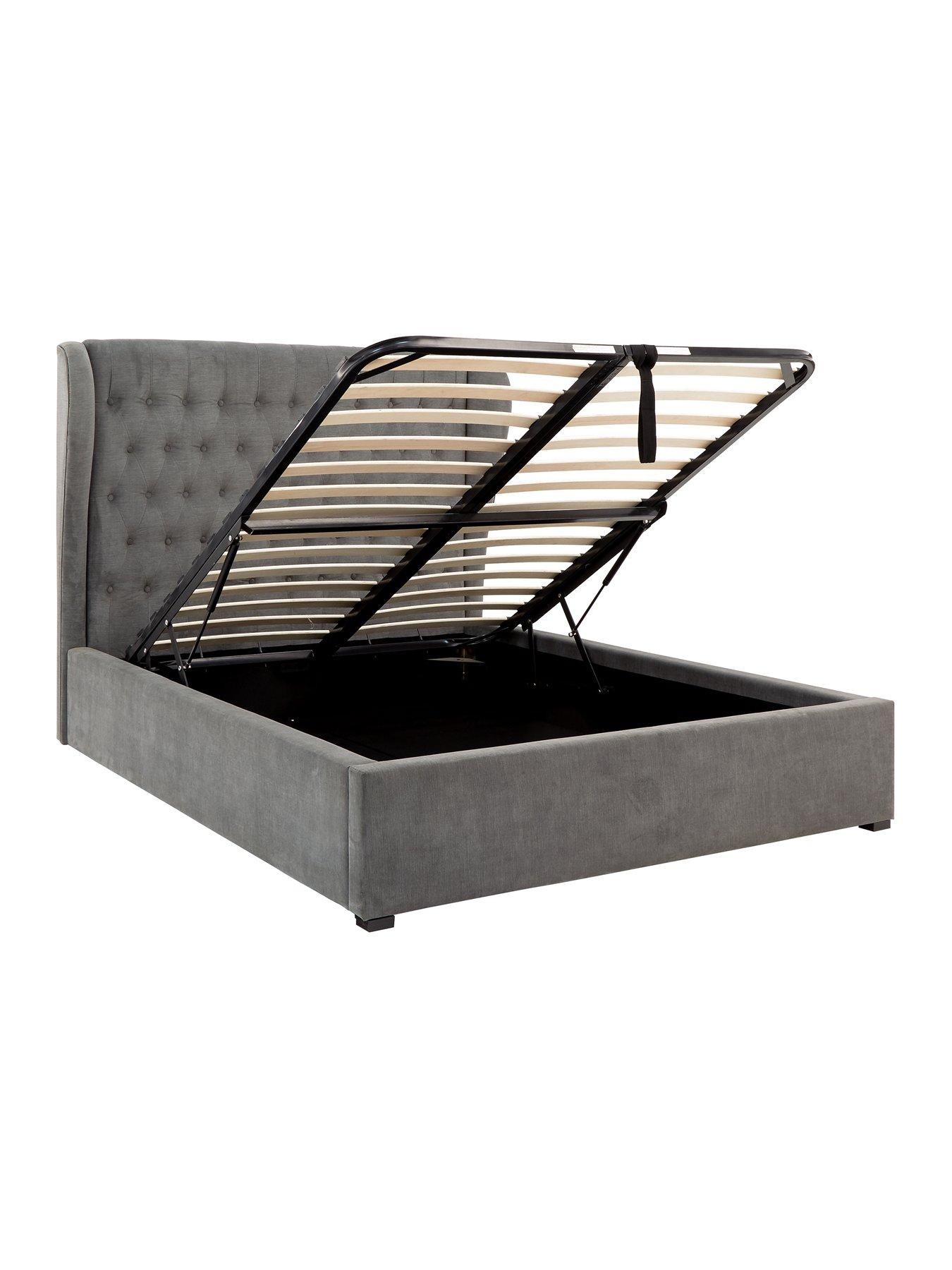 GFW Geena Double End Lift Storage Ottoman BedframeThe Dakota Ottoman Storage bed adds a touch of grandeur to the bedroom. The high headboard with large scrolls gives an impression of status and the soft, sumptuous fabric make the bed incredibly stylish. The Dakota is also an ottoman bed, meaning plenty of storage space hidden beneath the mattress for all of you bedding etc.