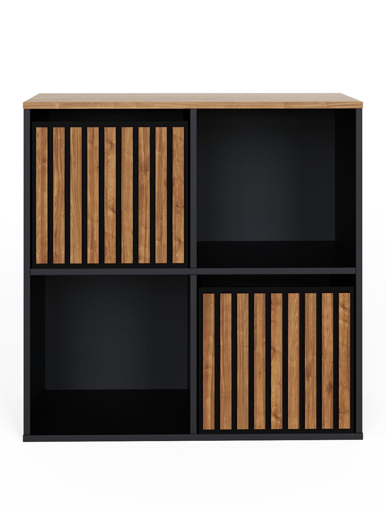 Contemporary cube storage with black and walnut-effect design