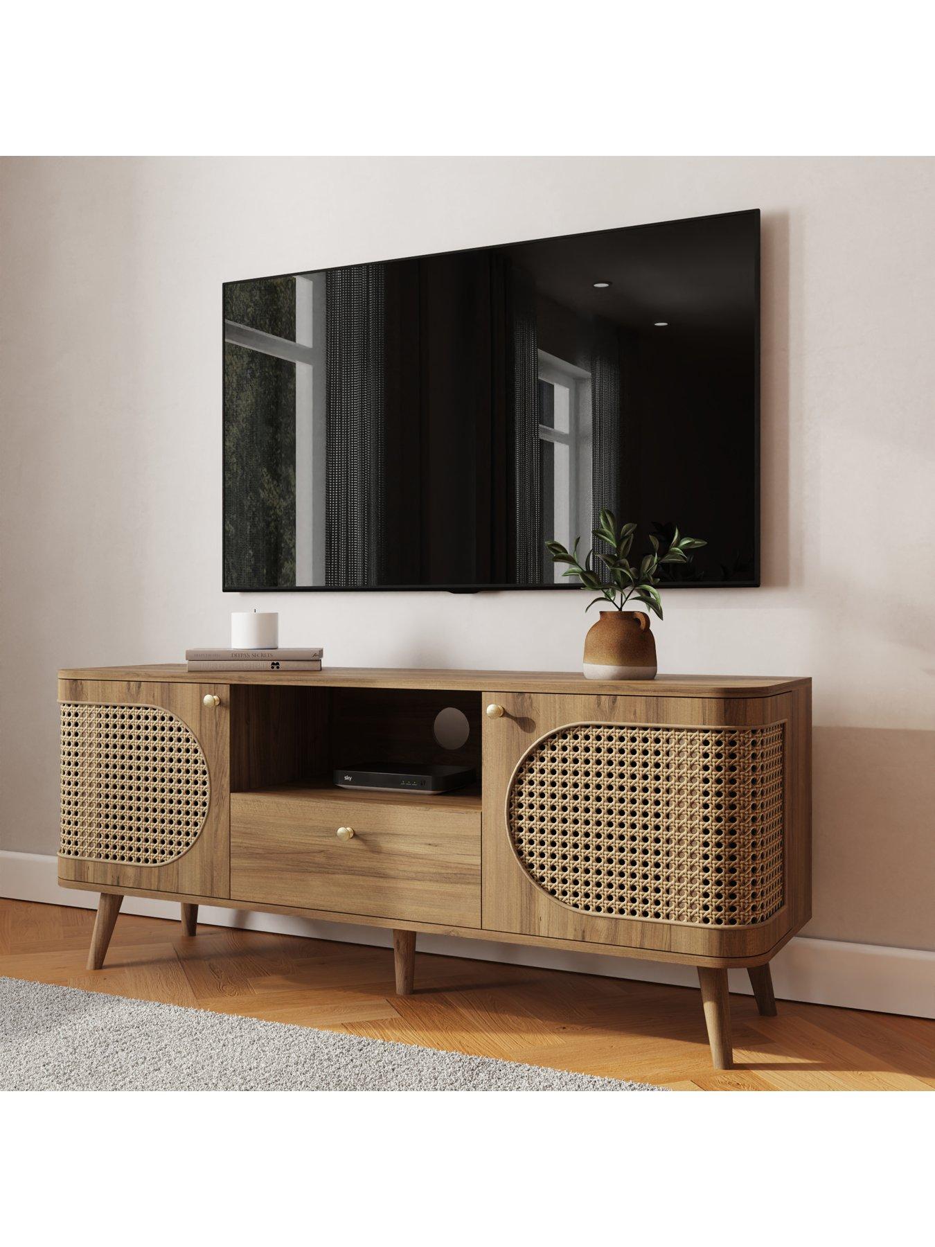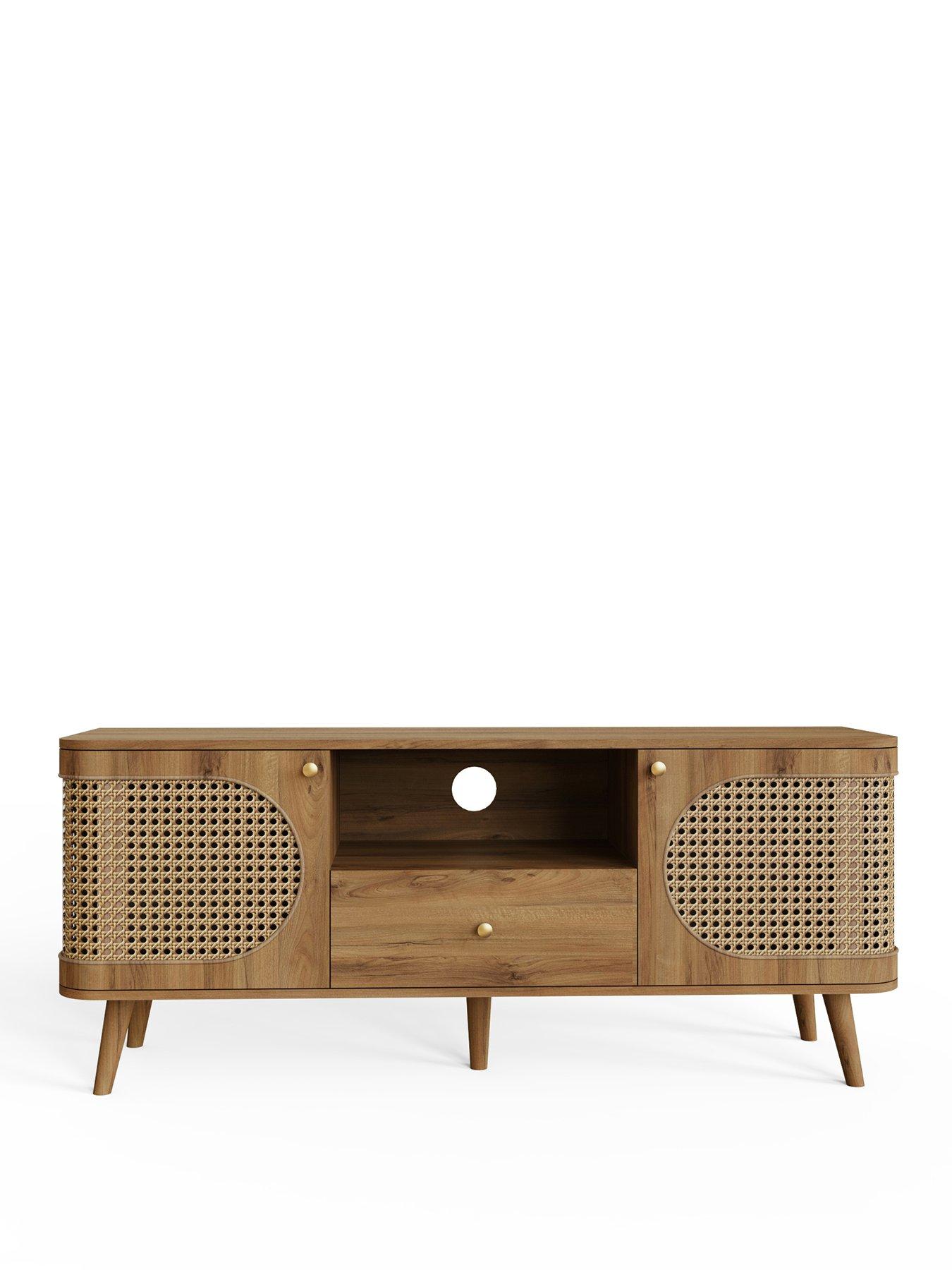 GFW Sorrel Tv Unit (fits Up To 55")The Sorrell Rattan TV Unit combines modern functionality with the charm of handcrafted design. Ideal for contemporary living rooms, it features spacious shelves for media equipment and concealed cupboards with woven rattan fronts for a naturally textured finish. The smooth curved edges and brass-effect handle add a refined touch, while the raised legs create a light and open feel. Perfect for keeping your space tidy and beautifully styled, this oak TV unit blends seamlessly with both classic and modern decor.
