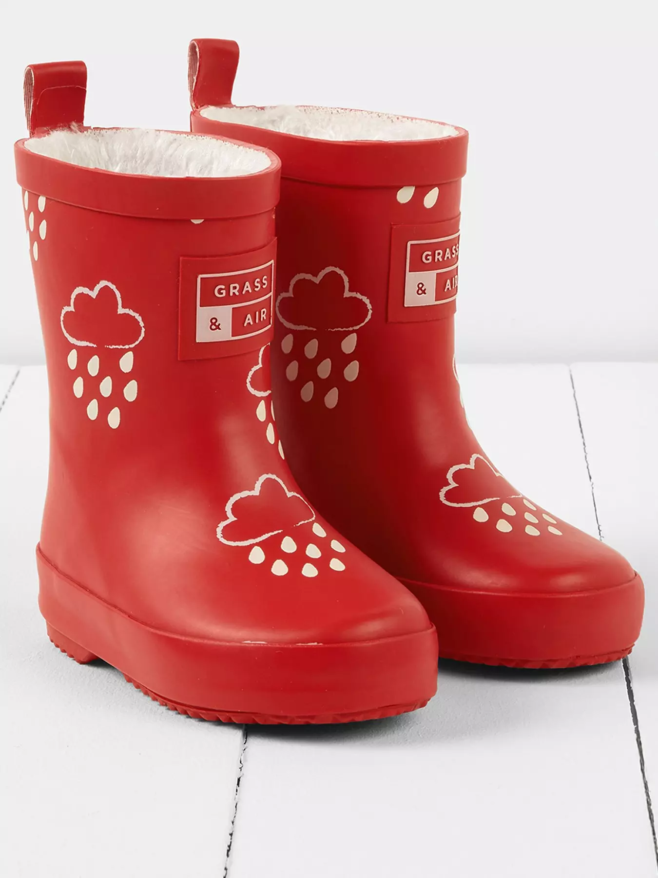 Grass & AirInfant/ Junior Colour-Revealing Winter Wellies - Red