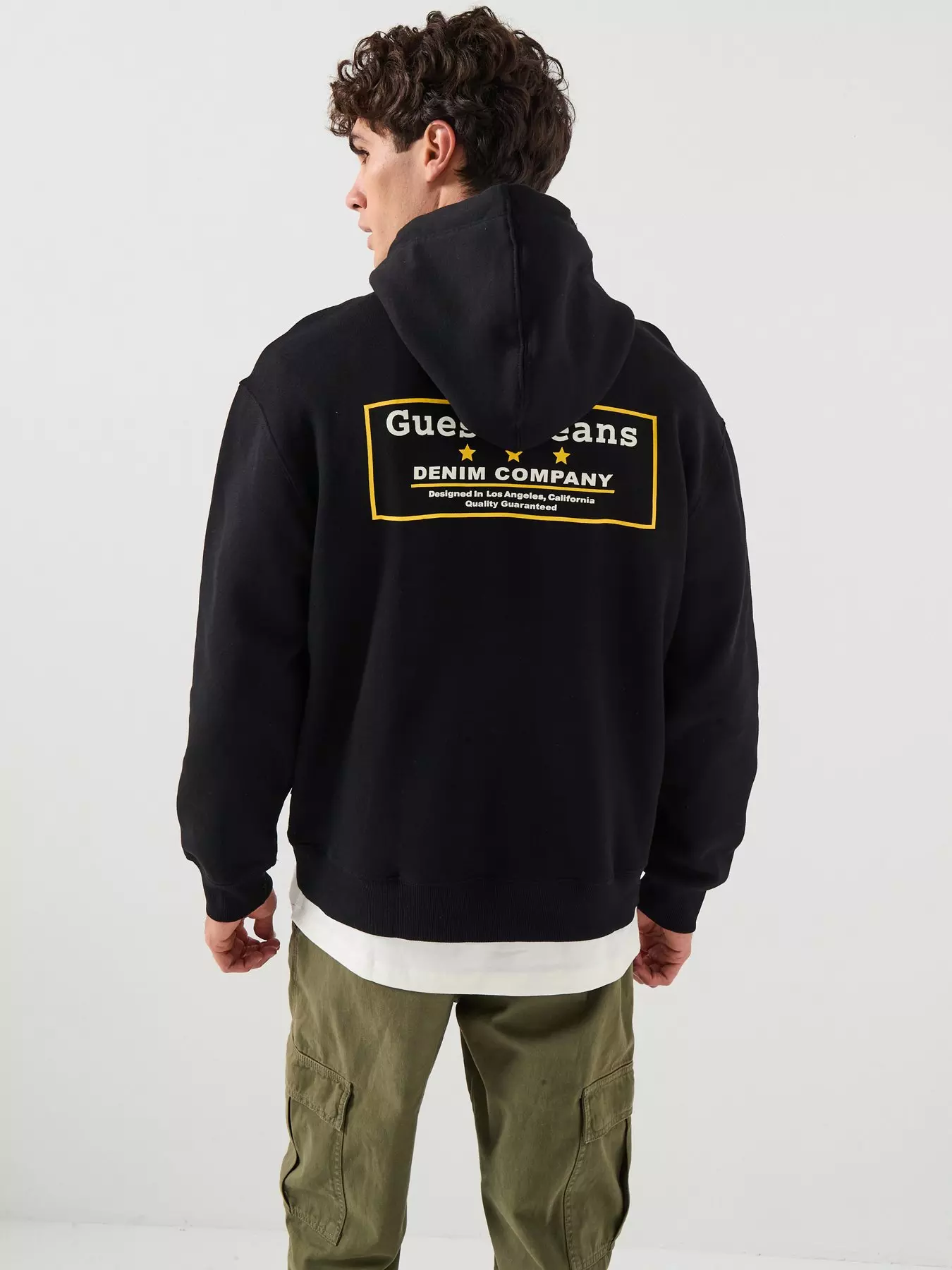 GuessJeans Embroidered Logo Back Graphic Hoodie - Black