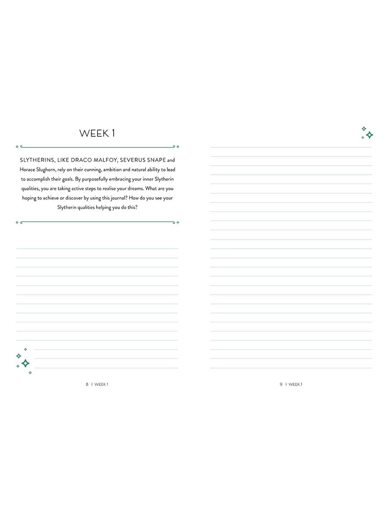 Discover the ambition of your inner Slytherin with this official, year-long guided journal inspired by the Harry Potter series.In the Harry Potter books, students sorted into the house of Slytherin are known for their ambition, cunning and resourcefulness. Now, fans of the iconic film series can embrace their inner Slytherin with this deluxe guided journal.Featuring classing Slytherin iconography, this year-long journal includes a mixture of one-line-a-day activities, lists and free writing prompts to help fans tap into and develop the key trait that makes Slytherins so special: their ambition. With quotes from famous Slytherins throughout and prompts and activities inspired by key moments from the series, this thoughtful journal offers Harry Potter fans a space for self-reflection, evaluation and empowerment inspired by the books and movies they love. About the brand: Harry Potter toys bring the magic of Hogwarts to life through wands, characters and enchanting playsets. Fans can recreate their favourite moments or explore new adventures in the Wizarding World. |