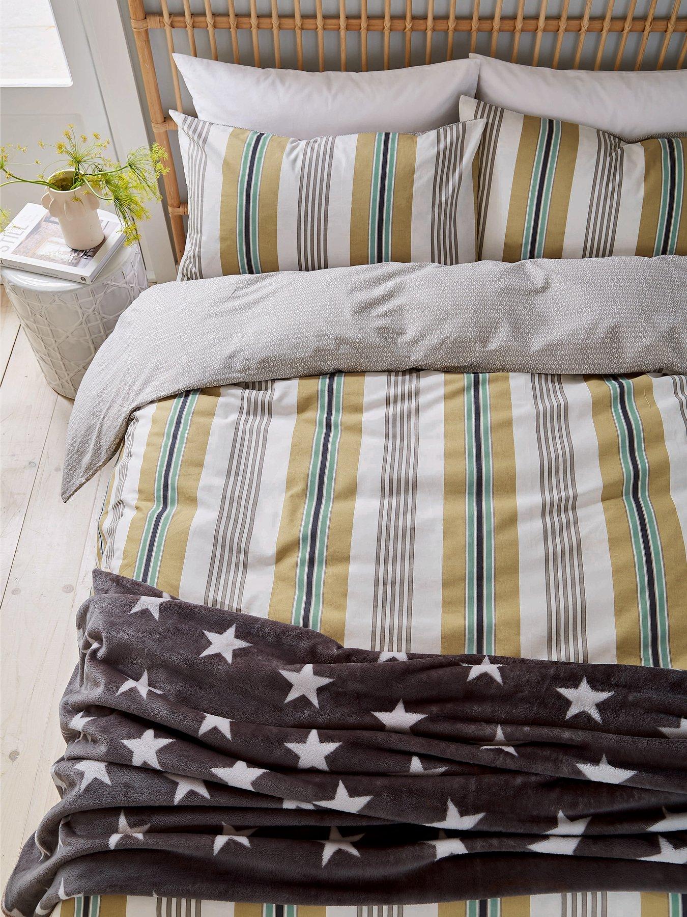 Star Fleece Throw Charcoal & LinenThe soft fleece throw (140x180cms) offers a warm embrace on cooler evenings. Scattered with stars, it has a contrast-coloured binding and is available in a blue & red colourway or a Charcoal & linen option.