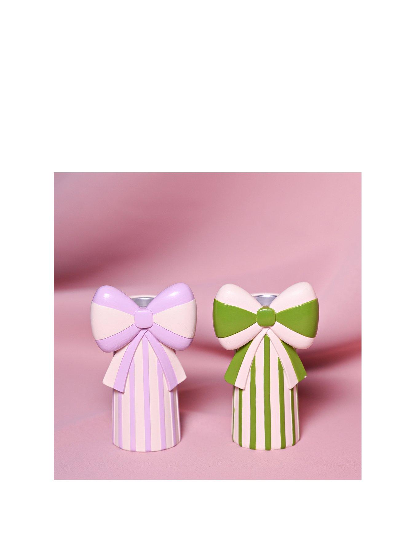 Hestia Raspberry Blossom Set Of 2 Candlestick Holders With BowBrighten up your home with the Raspberry Blossom Set of 2 Candlestick Holders With Bow, a vibrant and whimsical duo that brings charm and colour to any setting. Adorned with playful decorative bows, these eye-catching holders add a cheerful, distinctive touch to your decor-perfect for those who love bold, unique accents with personality.