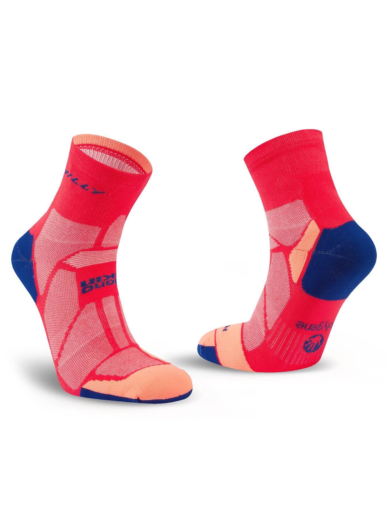 Hilly Marathon Fresh Minimum Cushioning Anklet Running Socks - PinkMoisture Wicking and Anti Blister with added freshness. If you need to keep using your socks without washing, this product with POLYGINE keeps the fabric fresher. Key features1.High performing dependable sock for commited racingand training.2.Polygiene StayFresh - permanent antibacterialodour control.3.Anatomical cushioning in key pressure zones.4.Breathable vented upper and arch grip tosecure foot.5.Flat under toe construction for minimal chafing.6.Y-heel for improved fit and minimal sock slippage.7.LYCRASPORT for lasting comfort, fit, shapeand performance.