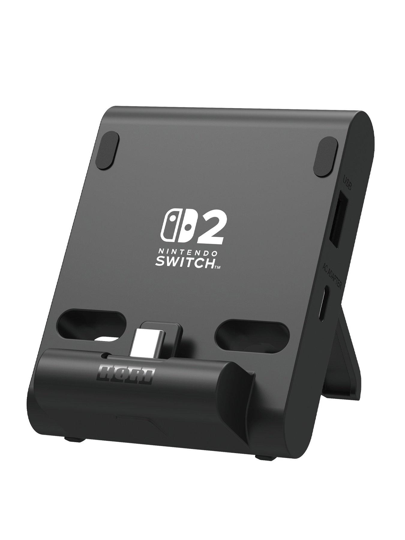 HORI Dual USB PlayStand for Nintendo Switch 2Friends and family can team up with the HORI Dual USB PlayStand for Nintendo Switch 2. Plug in up to two USB devices such as wired controllers to your system and double the fun of your gaming experience in tabletop mode. Includes two built-in USB-A ports and 1 USB-C port so you can plug in your Nintendo Switch AC Adapter (not included) to charge and play at the same time at the perfect angle. Officially Licensed by Nintendo.