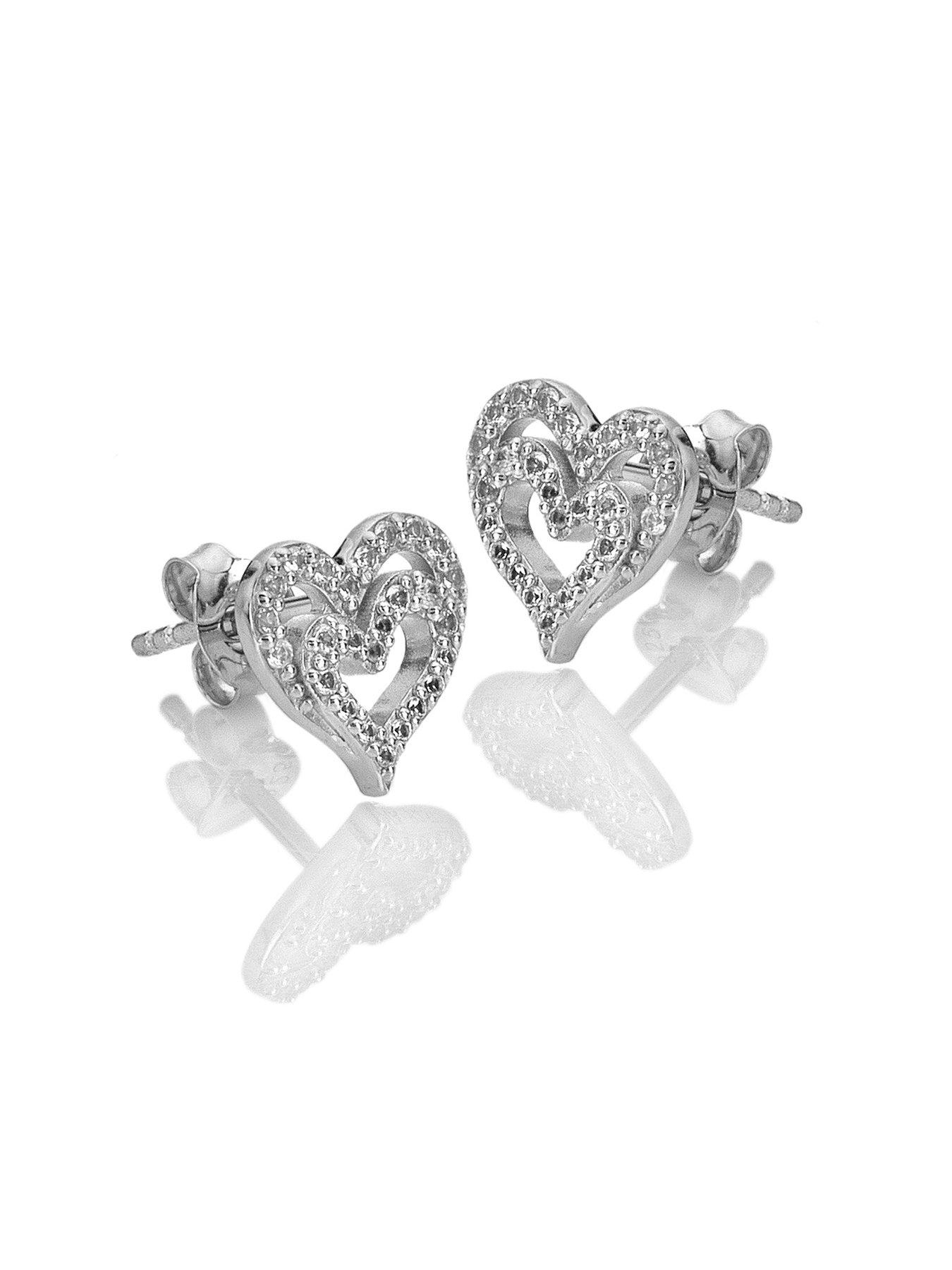 Shimmer and shine with our gorgeous heart earrings, set with White Topaz. Wear with the matching pendant for the perfect set. Crafted in sterling silver and hand-set with a real diamond, these earrings measure 10mm x 11mm.