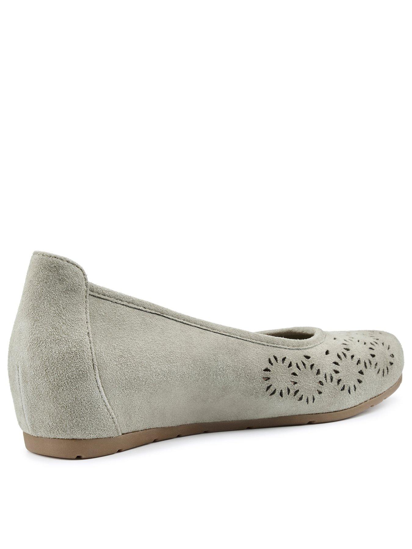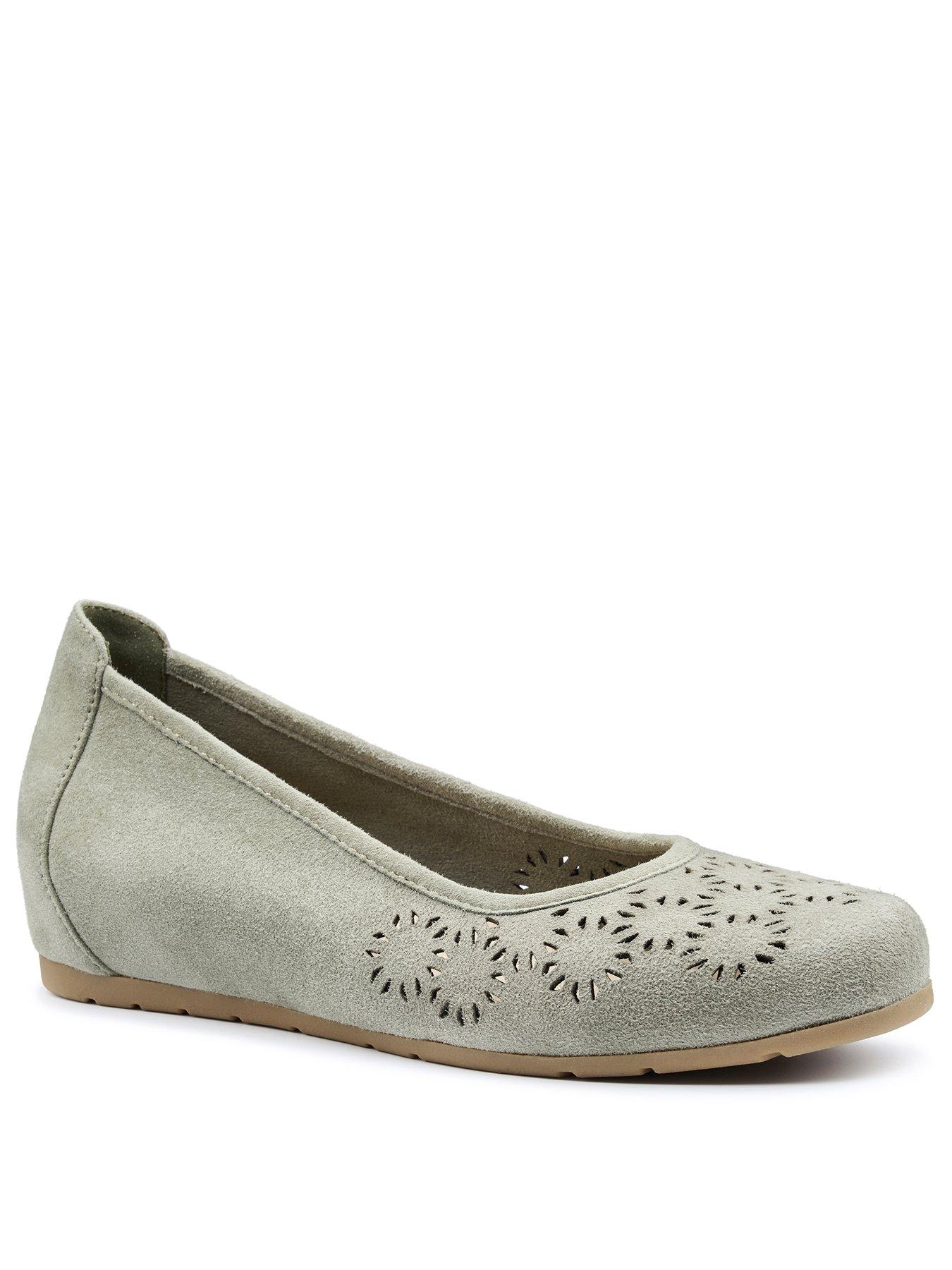 Hotter Swan Suede Wedge Shoe - GreenThis brand-new slip on has been designed with a hidden wedge, so you can enjoy a little height without compromising on comfort. Made for the sunny days, Swan features pretty cut out detailing across the front, along with beautiful seasonal shades. For everyday wear, rubber soles add grip and durability for underfoot comfort.