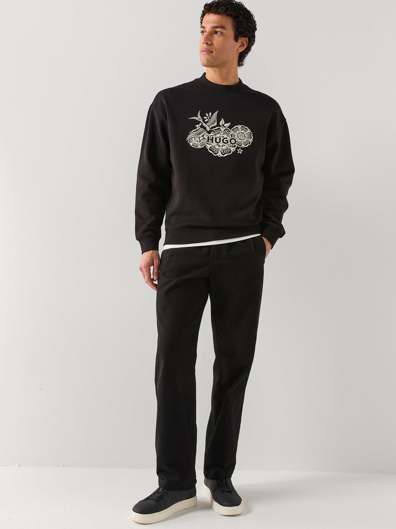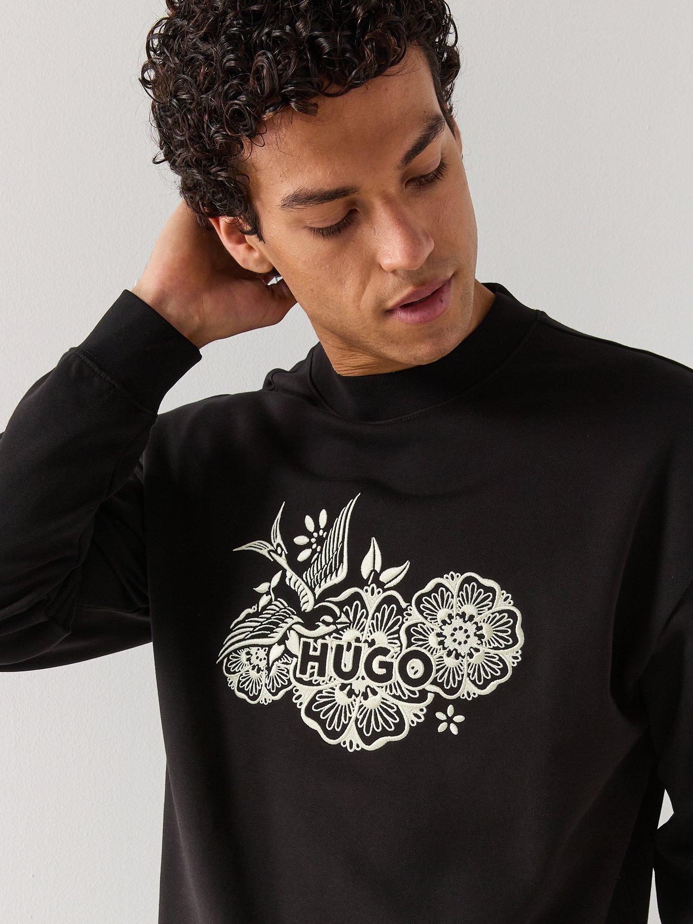HUGO Darony Embroidered Logo Relaxed Fit Crew SweatSize & Fit