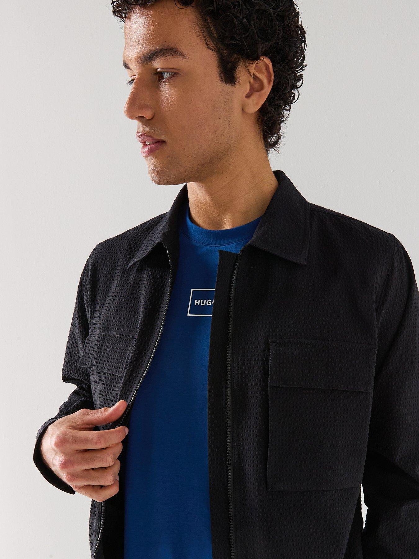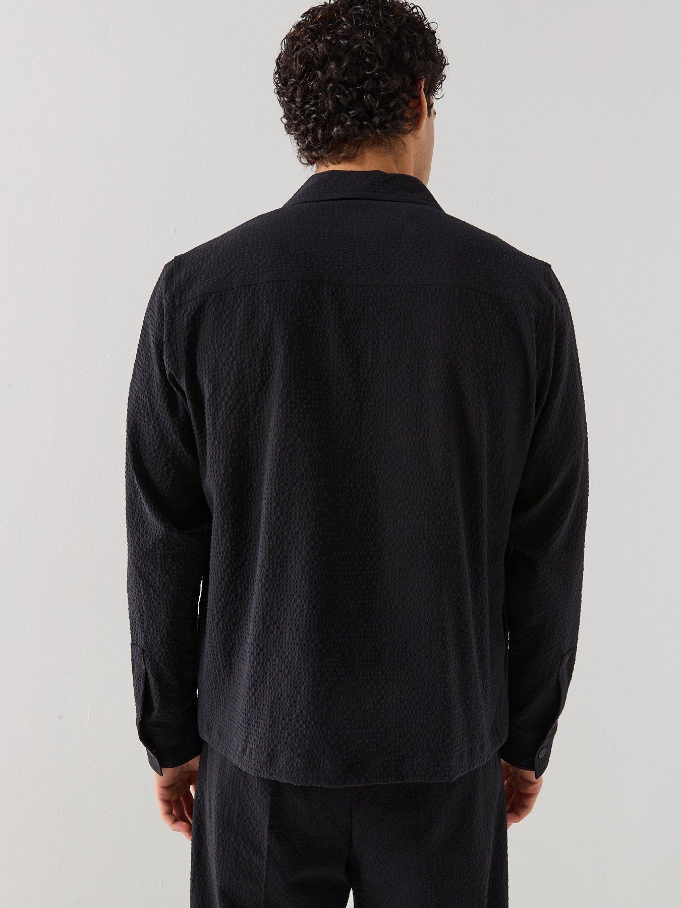 HUGO HUGO Eselio Seersucker Oversize Overshirt - Black