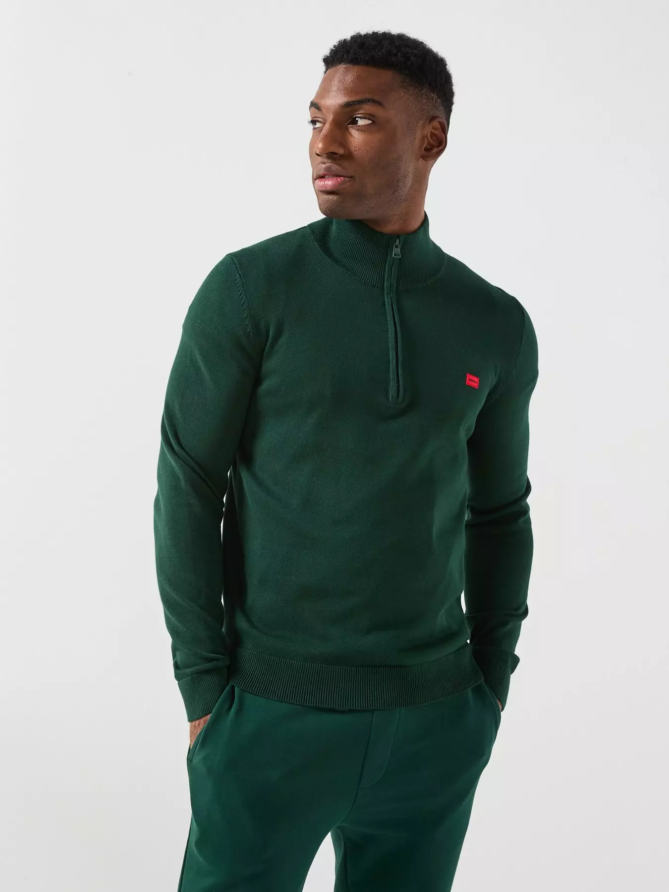 HUGOSan Quintus-C Regular Fit 1/4 Zip Knitted Jumper - Green