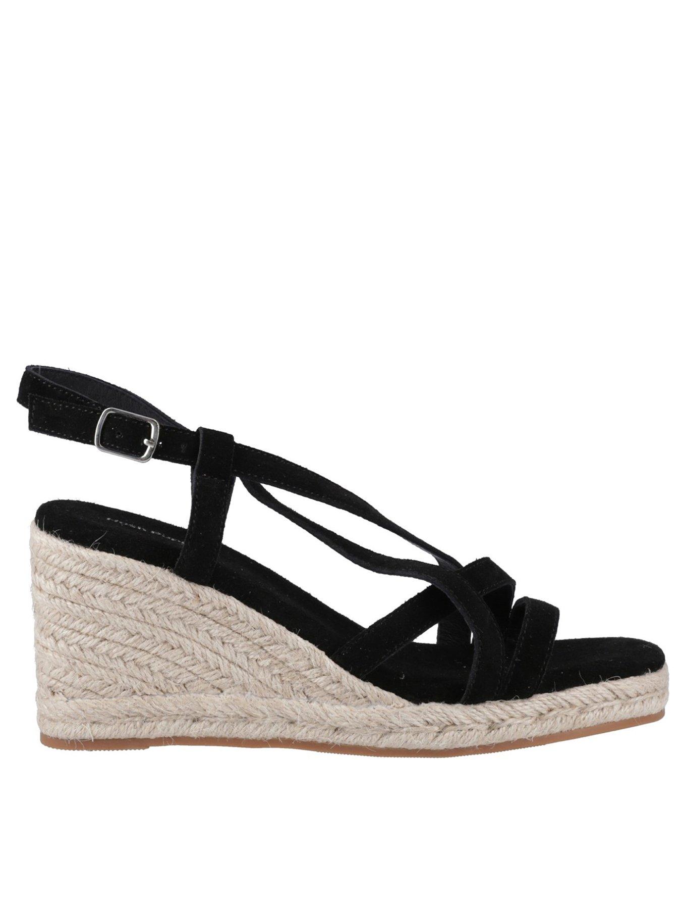 Hush Puppies Jenny Espadrille Wedge - BlackEnjoy long summer evenings in style with the Jenny, featuring a real suede upper, leather lining, memory foam insole and a jute wrapped outsole for a little natural flair these are a perfect sunshine staple for your wardrobe