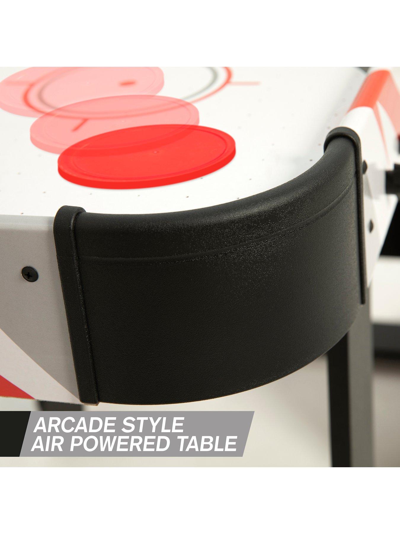 The Hy-Pro 4ft Air Time Folding Hockey Table offers a new playing experience that the whole family will love.This fantastic 4ft Air Hockey table is perfect for any home games room, bedroom or ‘man cave’. The arcade-style air powered play surface is sleek and smooth, ready for you to hone your skills and show everyone what you’re made of. With slide scorers and 2 shapes of puck, you can practice several types of shots and work on your scoring technique.With a folding system and integrated wheels, it can be compactly stored away when not in use, and easily unfolded for an impromptu tournament! Perfect for rainy days, sleepovers, parties and competitive siblings, the Hy-Pro 4ft Air Time Folding Hockey Table will provide plenty of arcade-style fun - without having to constantly visit a change machine!