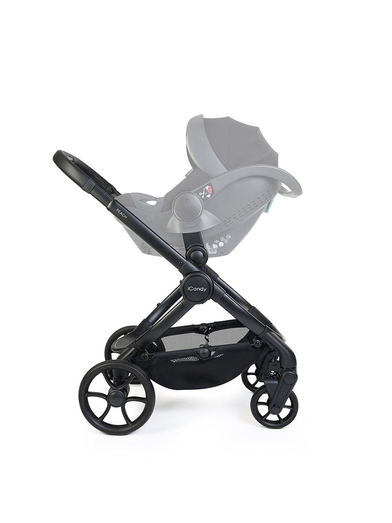 iCandy Peach 8 Complete Bundle - BlackThe iCandy Peach 8 Complete Bundle is a beautifully engineered, luxury pushchair solution from birth, combining iCandys latest innovation with effortless everyday functionality, tailored to fit perfectly around modern family life. Building on the legacy of the iconic Peach range, the Peach 8 introduces refined styling, enhanced comfort and future-ready features, while retaining the elegance, quality and performance parents trust.Suitable from birth up to 25kg, it is a beautifully balanced tandem pushchair on a single footprint, converting smoothly from single to double or twin without compromising manoeuvrability. The spacious, collapsible carrycot has been updated to deliver significantly increased airflow and is approved by The Lullaby Trust for permanent overnight sleeping, including when used with the compatible iCandy MiStand. Enhanced suspension, an extended canopy, ergonomic release system, flip-flop friendly brake and integrated Ride-on Board ensure a smooth, effortless ride on every journey. The Peach 8 Complete Bundle delivers cutting-edge design, intelligent functionality and luxury comfort. Including everything you need for a coordinated outing: Raincover, Screen, Elevator Adaptors, Car Seat Adaptors, Footmuff & Liner, Changing Bag, Parasol, Cup Holder and Clamp. Together, they provide a beautifully styled, luxury solution from newborn to toddler, ensuring every family journey is effortless, comfortable and perfectly tailored.