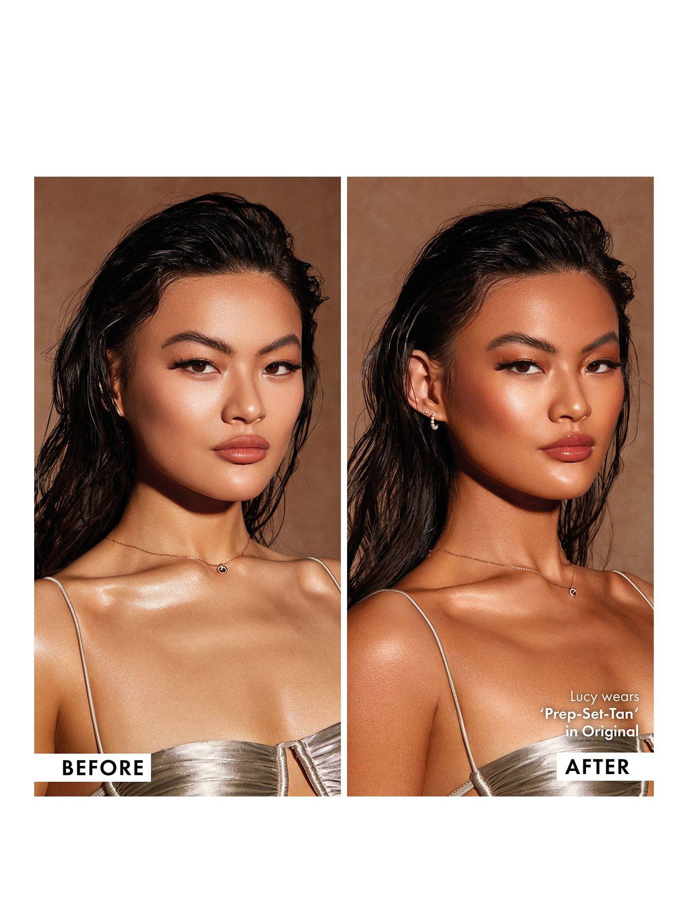 Glisten up with Iconic London Prep-Set-Tan Tanning Mist!Iconic London's best-selling, truly ICONIC shimmer-spritz, Prep-Set-Glow now has a summer-time sister spray, Prep-Set-TAN - and she's infused with the most premium tanning agents to give you your best golden, glowing tan yet. This is an instant on-the-glow stay-cay AND vay-cay essential.Prep-Set-Tan is enriched with Hyaluronic Acid, giving you a nourished, healthy-looking, and even tan that will last for longer, without drying your skin or catching on ankles, wrists or elbows. Nothing less than SCENT-sational, it is infused with an evocative tropical aroma that not only masks that typical tanning odour but transports you to a far-flung paradise. There's TWO glistening, gorgeous shades to choose from - ORIGINAL and GLOW - suitable for all skin tones. Unique to ICONIC London, this tanning spray adds an immediate, soft-focus shimmer to the skin. Shade ORIGINAL will develop into a subtle, sun-kissed effect. Shade GLOW will develop into a richer, warmer tan to add depth to your complexion. KEY INGREDIENTS: HYALURONIC ACID Thanks to this hydration hero, this light-weight mist leaves the skin feeling happy and nourished for a tan that looks seamless and lasts long. MULTI-VITAMINS A complex of vitamins A, E & F known for their skin conditioning and antioxidant properties help the skin feeling nourished. FRESH FORMULA Cucumber and Chamomile Extract will help your skin feel refreshed and revitalised.