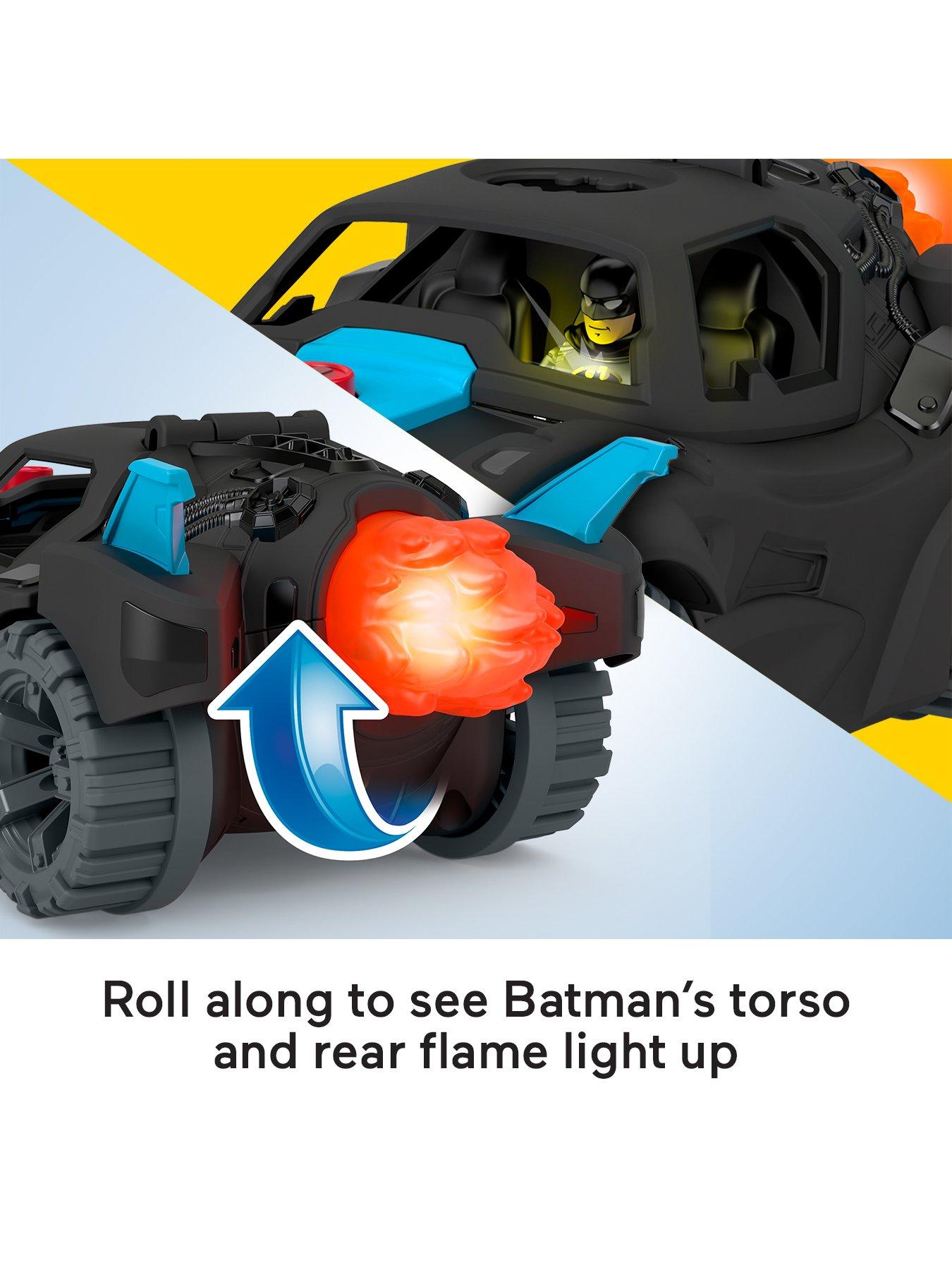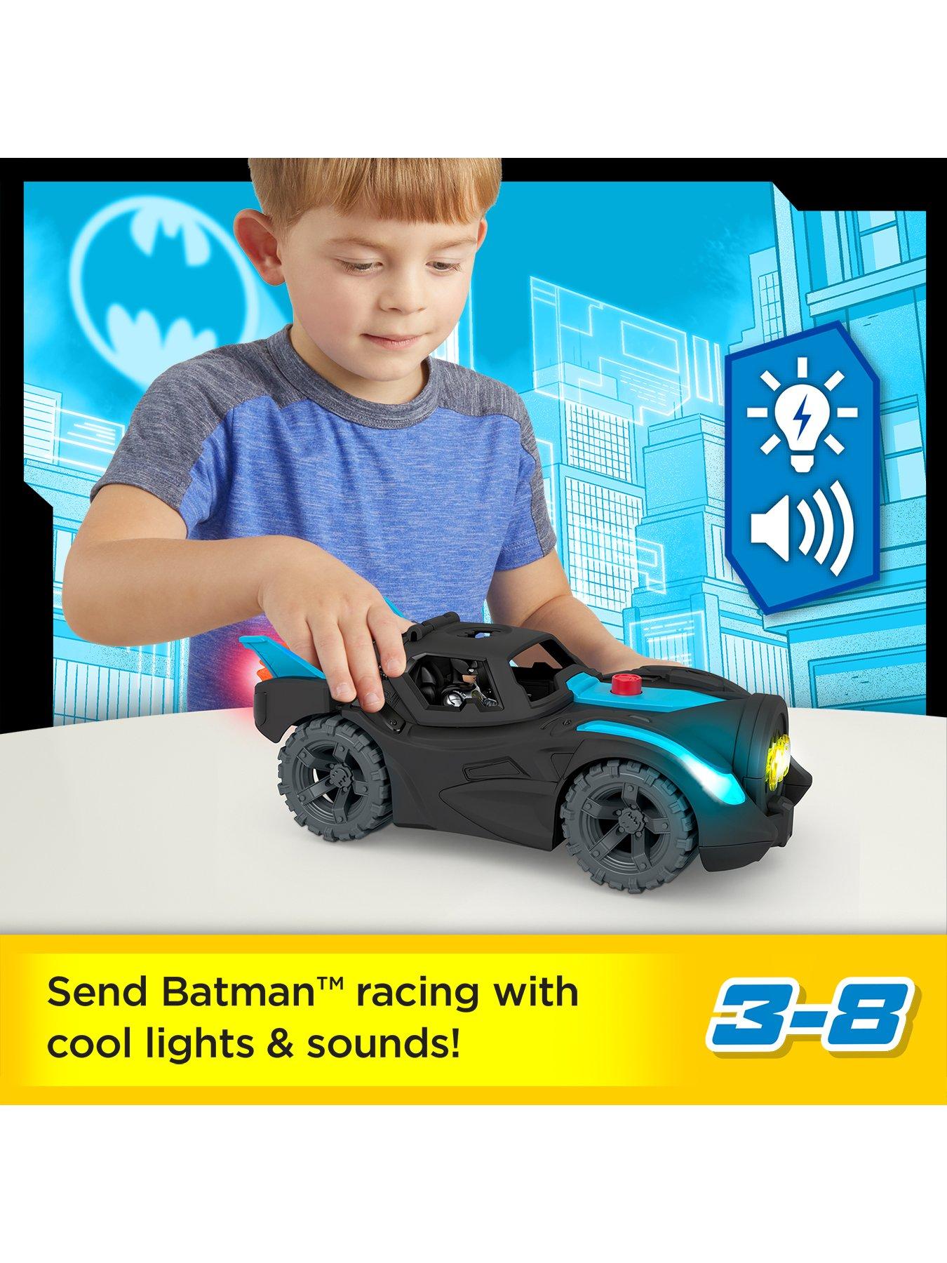 Imaginext DC Super Friends Bat-Tech Lights & Sounds BatmobileYoung crimefighters can take their action-packed Batman adventures to the next level with this Imaginext DC Super Friends Lights & Sounds Batmobile from Fisher-Price. This fully loaded push-along Batmobile features awesome glowing lights and sounds that activate as kids roll the vehicle along. With Batman in the driver's seat, kids can also press the button to see the figure's torso light up along with the vehicle! Place a second Imaginext DC Super Friends character in the passenger seat for more Super Hero action. (Additional figures sold separately and subject to availability.)