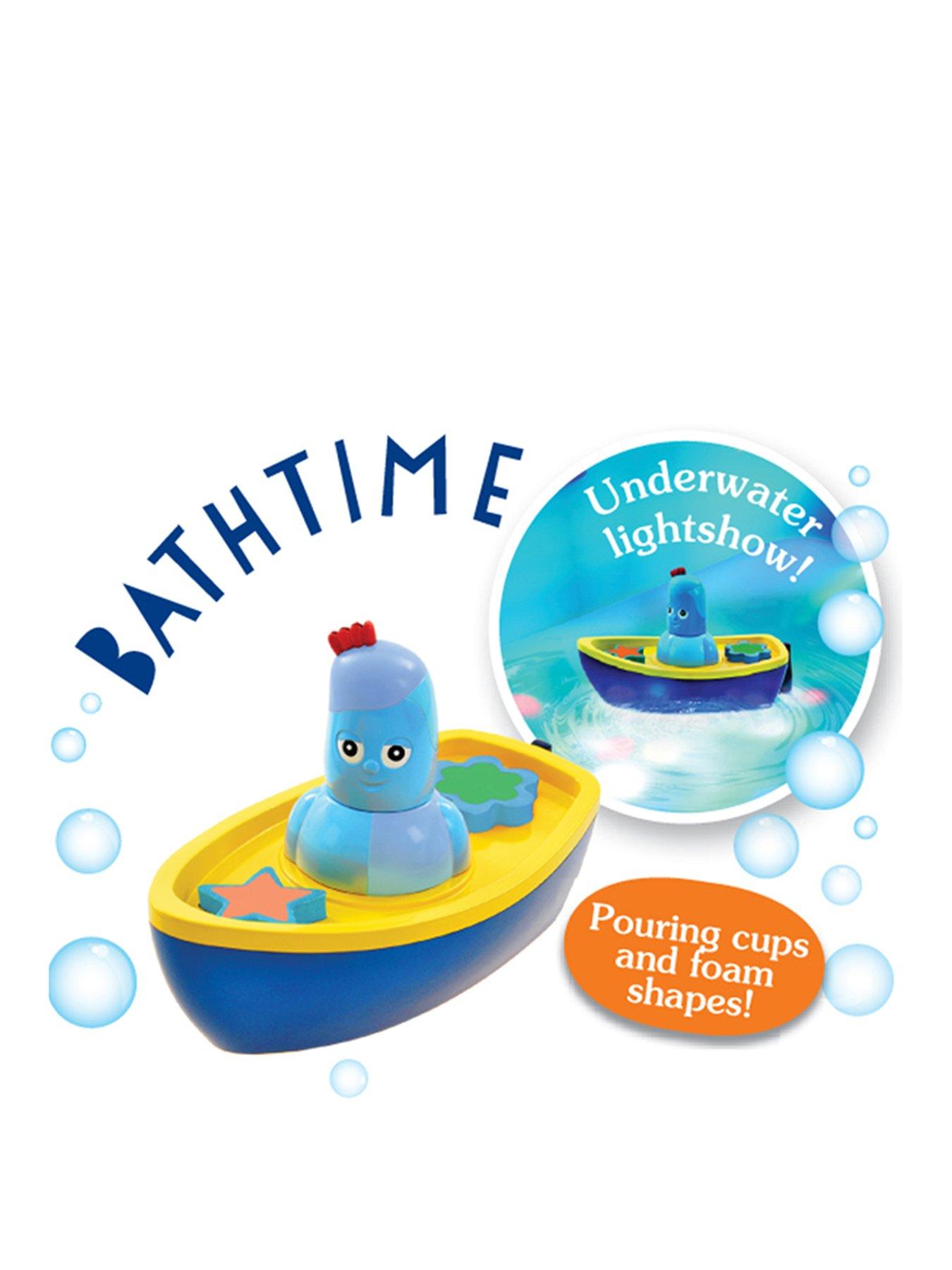 In The Night Garden Iggle Piggle's Light Up Shape Sorting Boat Bath ToyFans of the much-loved TV show, In the Night Garden will love Igglepiggle's Lightshow Bath-time Boat. The amazing colourful lights illuminate the bottom of the bath with three different coloured LED's and ever changing light-up pattern to help make bath-time peaceful and soothing ahead of that all-important bedtime routine. Igglepiggle can be detached from the boat and comes in two sections that can be used as pouring cups for fun water play. The foam shape sorting blocks are perfectly sized for little hands to grasp and can be placed within the corresponding shapes in the boat, aiding fine motor skills and shape recognition. They float too for even more fun! Suitable from 12 months